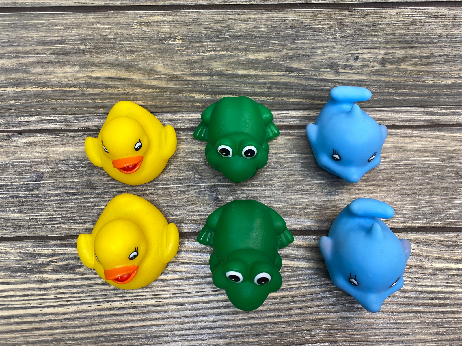 как выглядит Vintage Plastic Rubber Bath Tub Squeak Toys Ducks Frogs Whales Lot of 6 фото