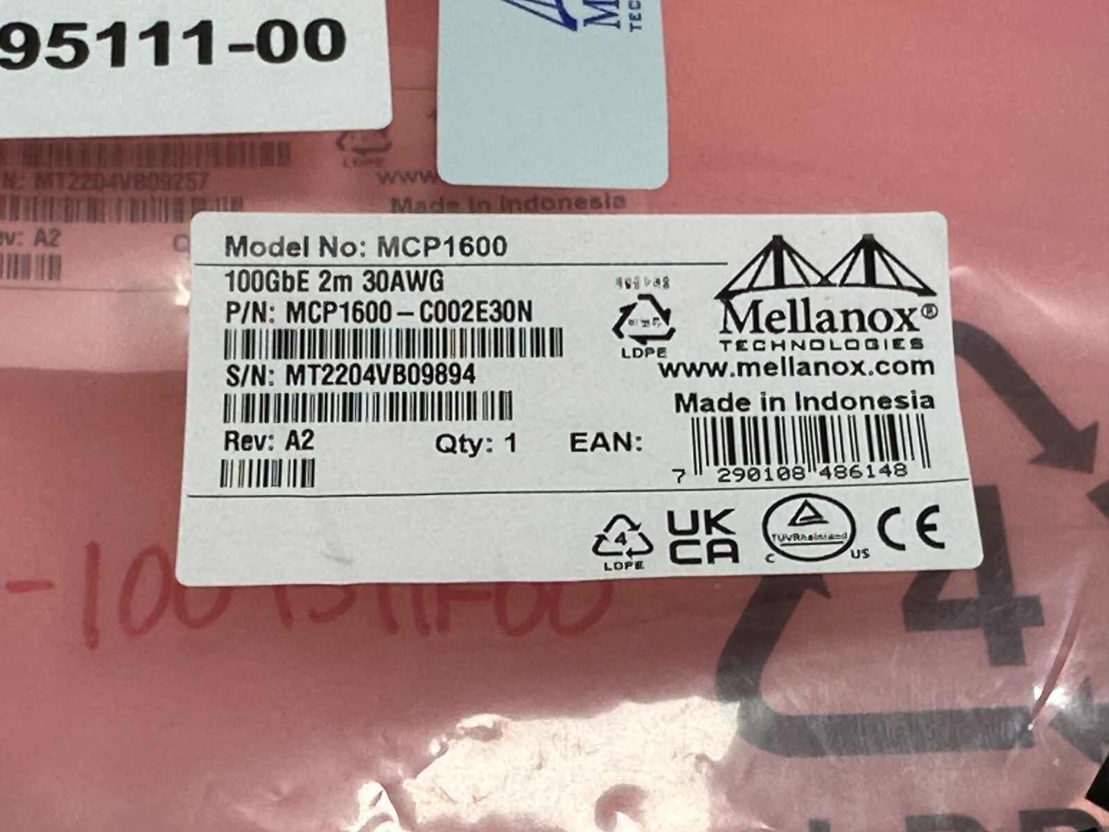 как выглядит LOT OF 3 NEW Mellanox MCP1600-C002E30N 100GBE 2M QSFP28 BLACK 30AWG CABLE фото