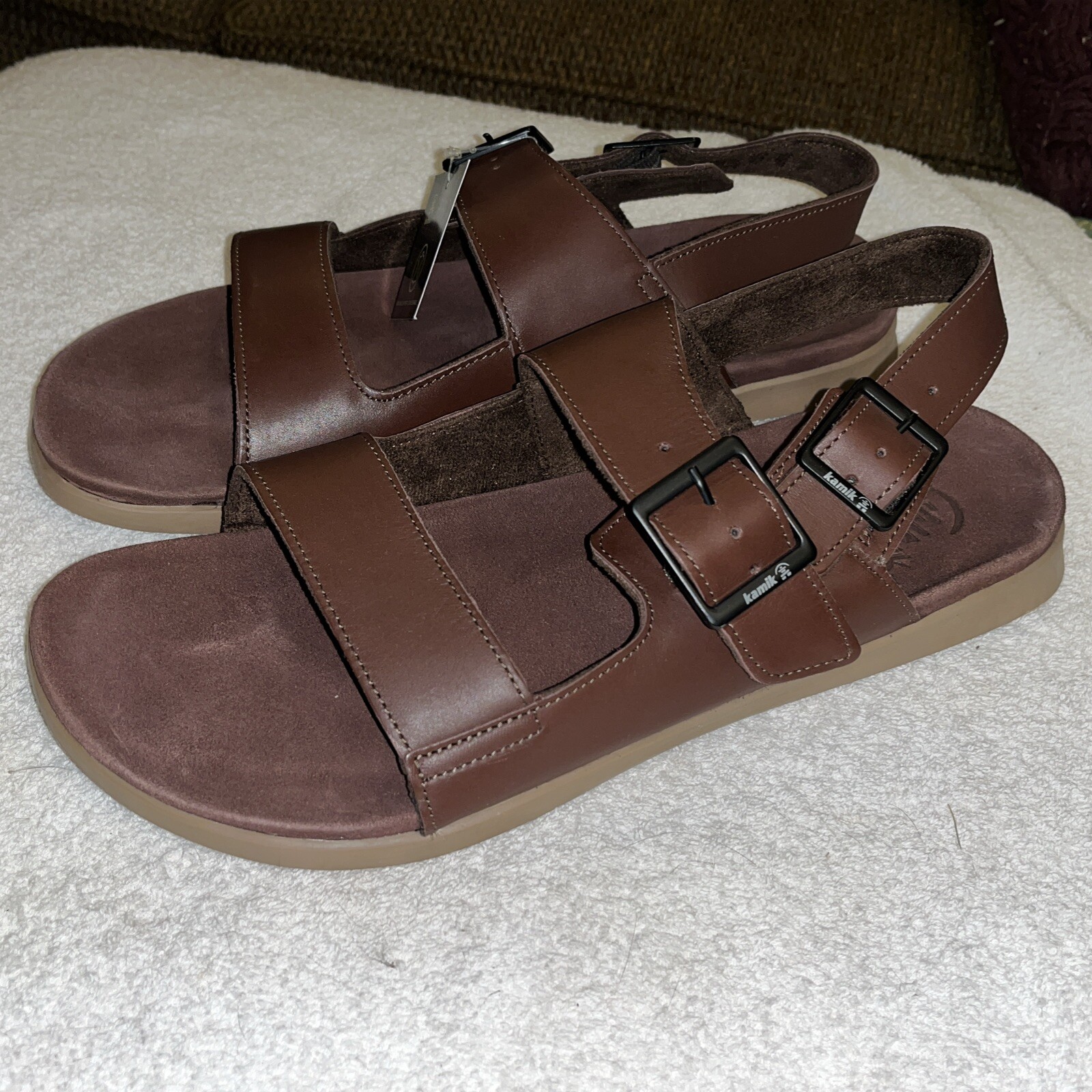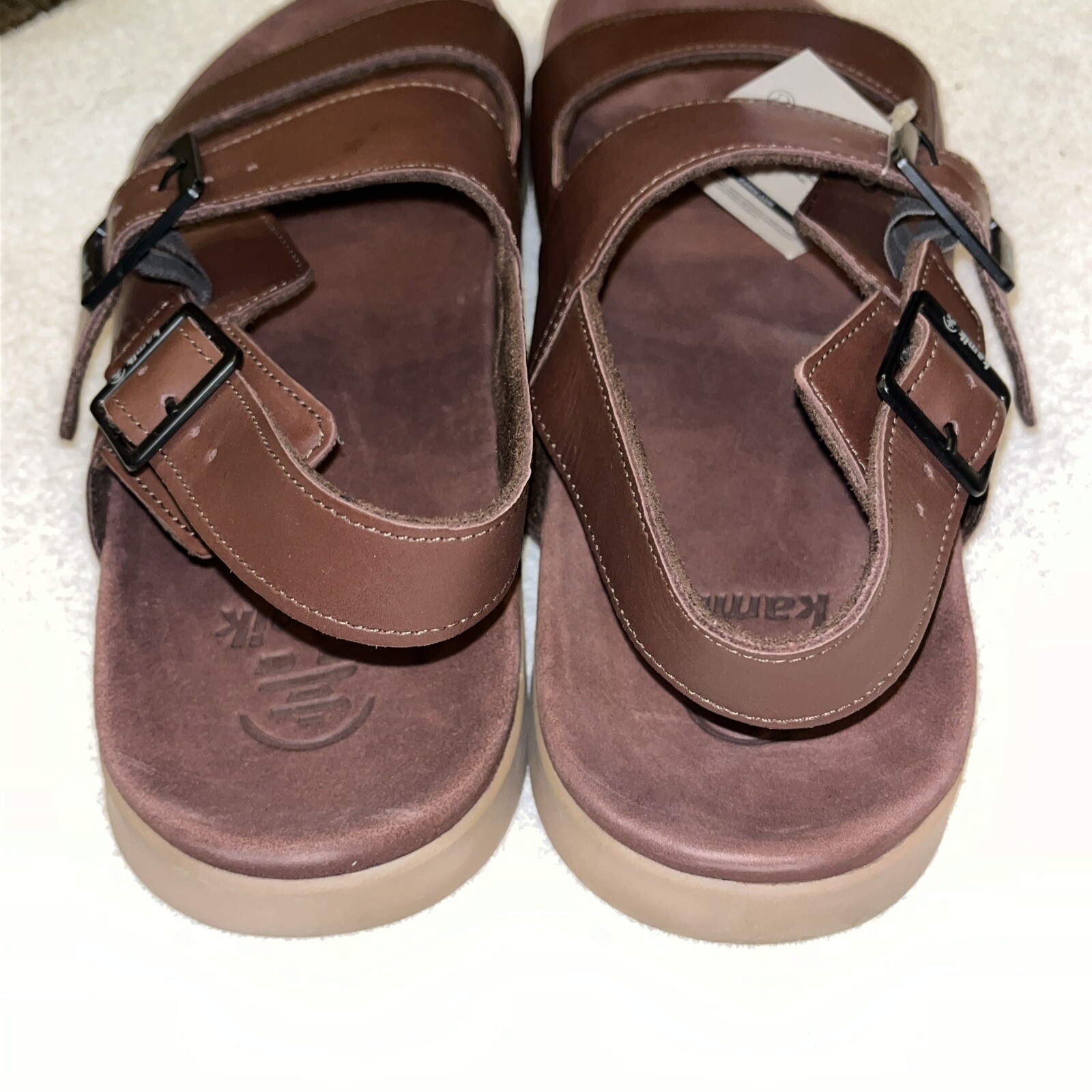 как выглядит KAMIK Mens Marty Sandals in Brown Leather sz 13 Dual Strap Buckle New фото