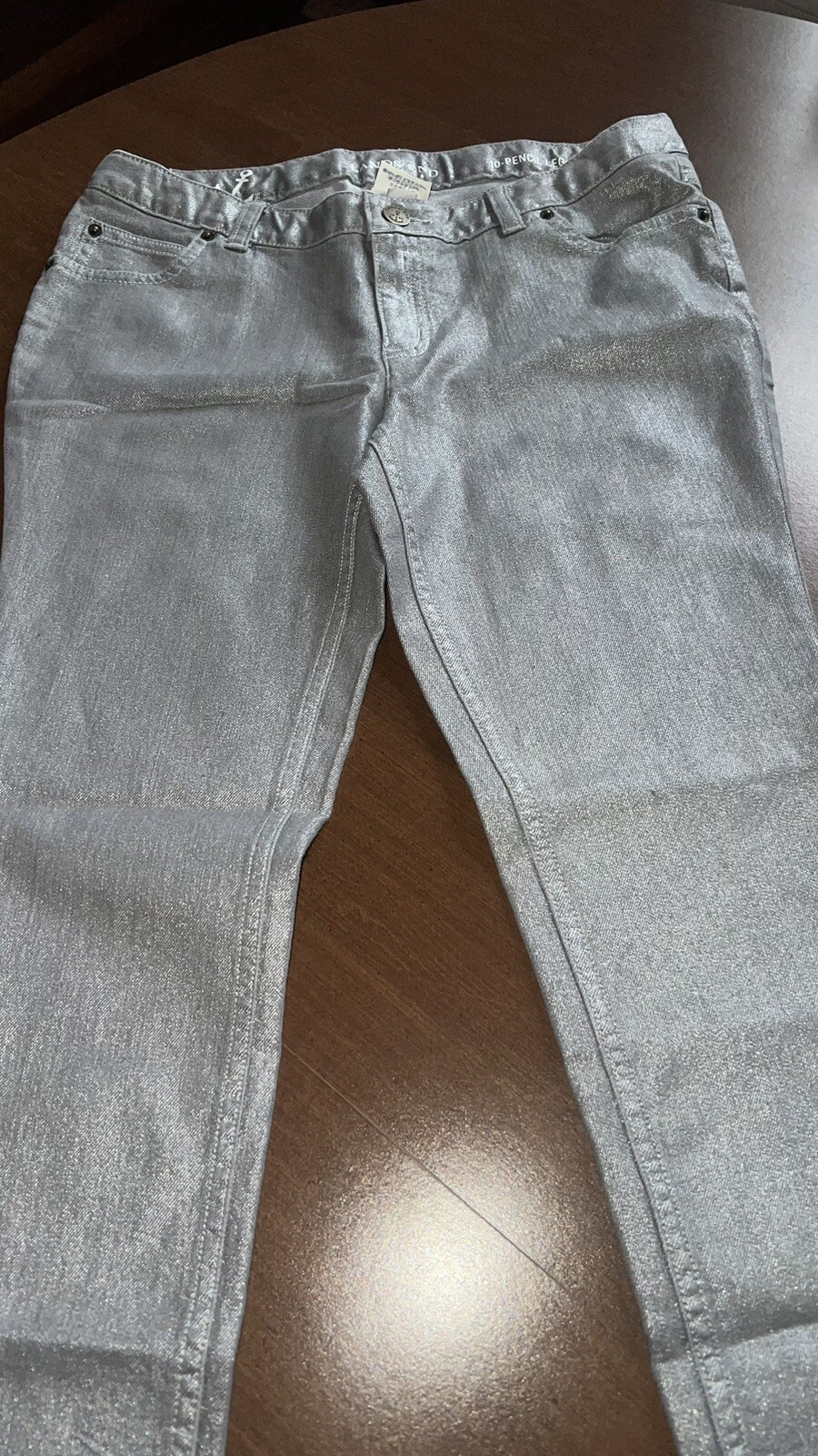 Lands' End Girls 10 10 Plus Pencil Leg Jean Gray Metallic Adjustable Waist NWOT
