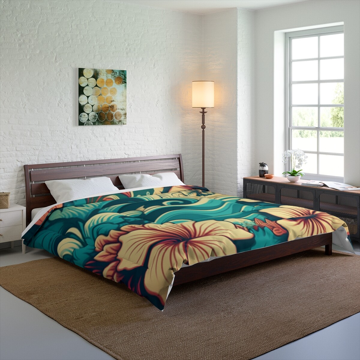 King Size Comforter Hawaiian Tropical Surf Beach Home Decor Floral Aloha Waves