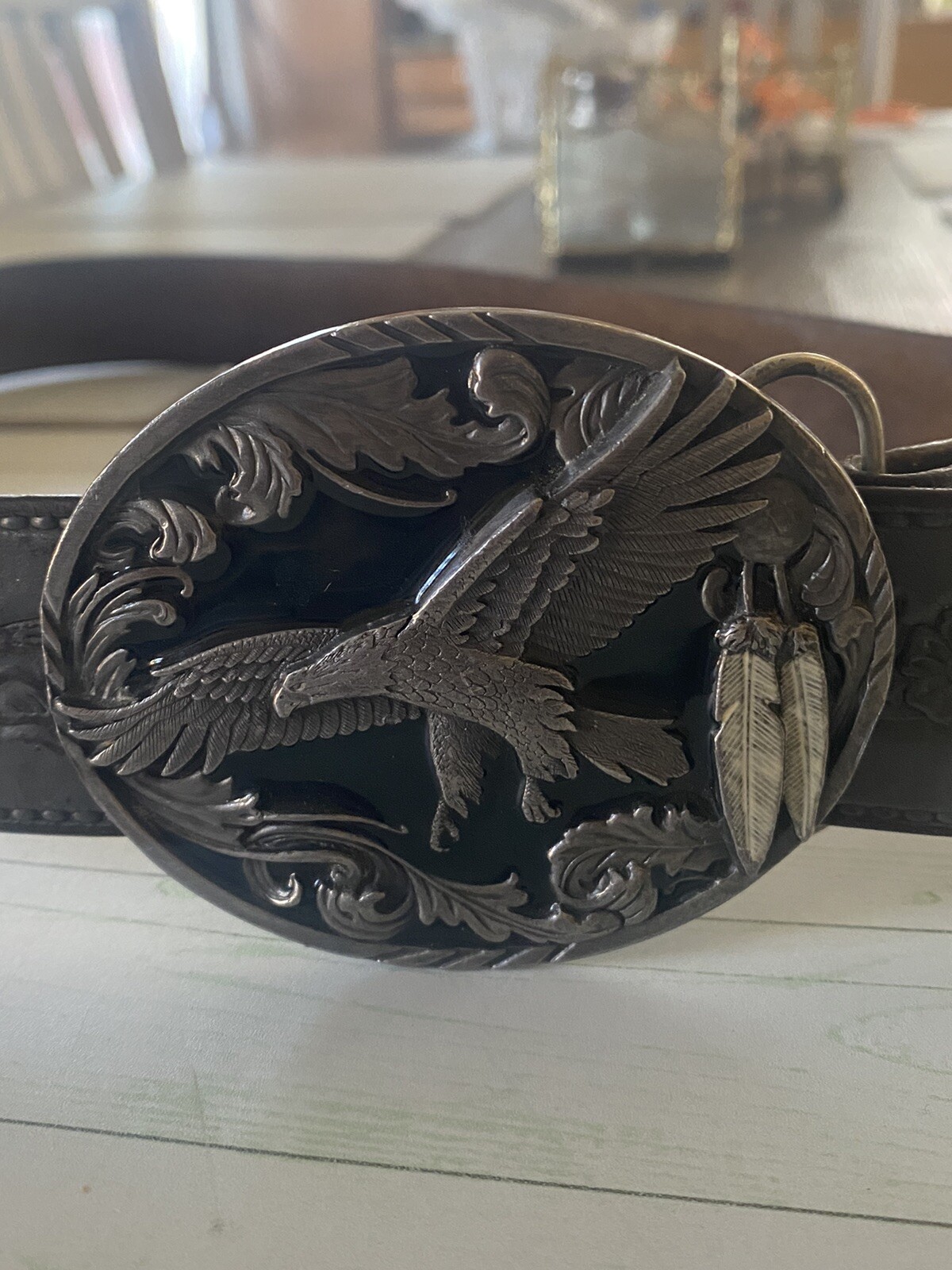 1995 EAGLE THEME BELT BUCKLE Siskiyou - HEAVY With Belt Grey