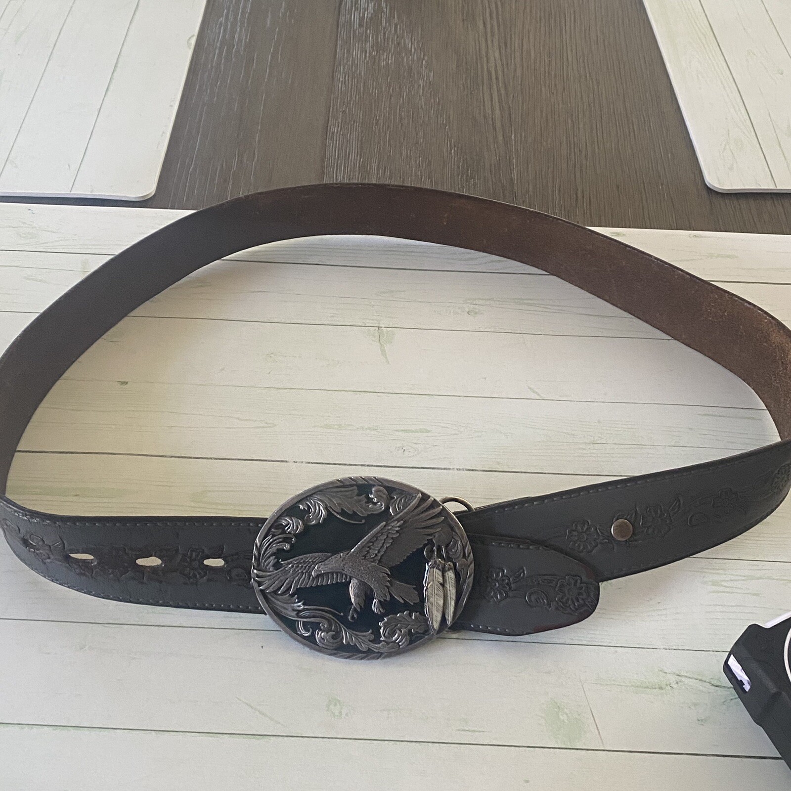 как выглядит 1995 EAGLE THEME BELT BUCKLE Siskiyou - HEAVY With Belt Grey фото