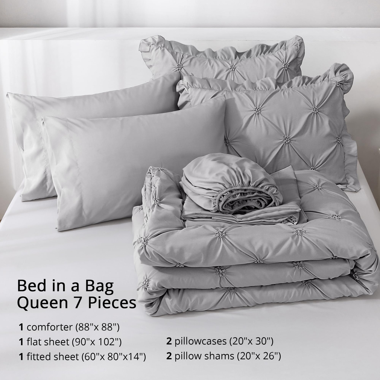 Grey Queen Comforter Set 7 Pieces Pintuck Comforters Queen Size Bed In A Bag Que