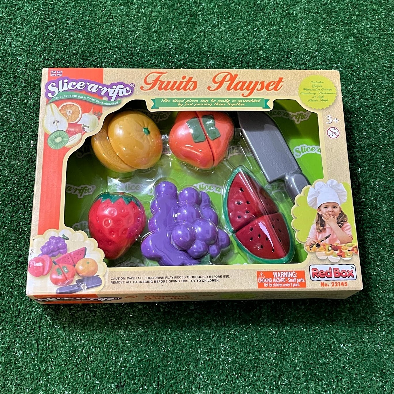 Pretend Food Play Set FRUITS Red Box Food and Accessories 11 Pcs Easy-Slide NEW