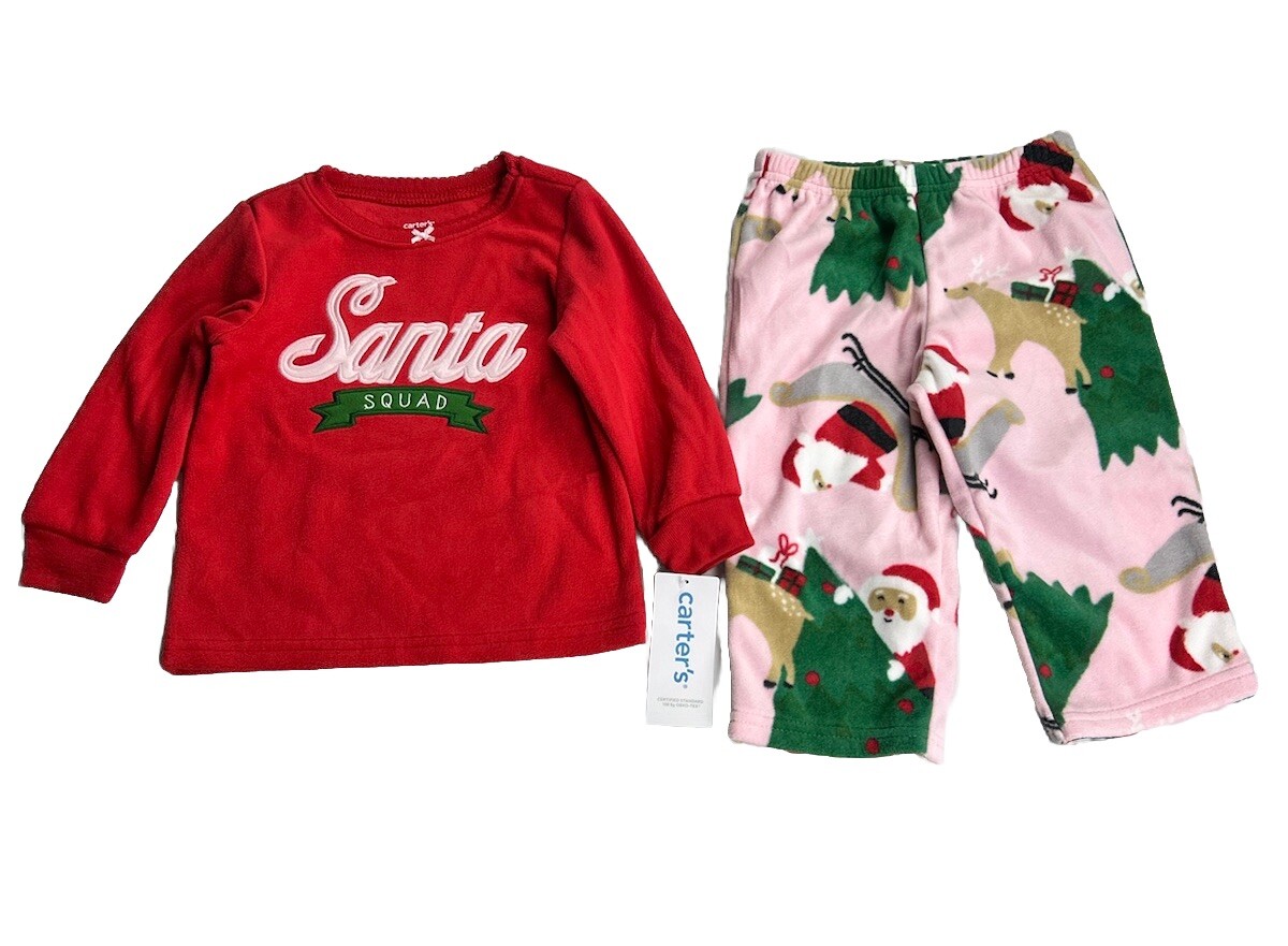 Carter's 2-Piece Christmas SANTA SQUAD Pajamas Size 12 Months Fleece OEKO-TEX