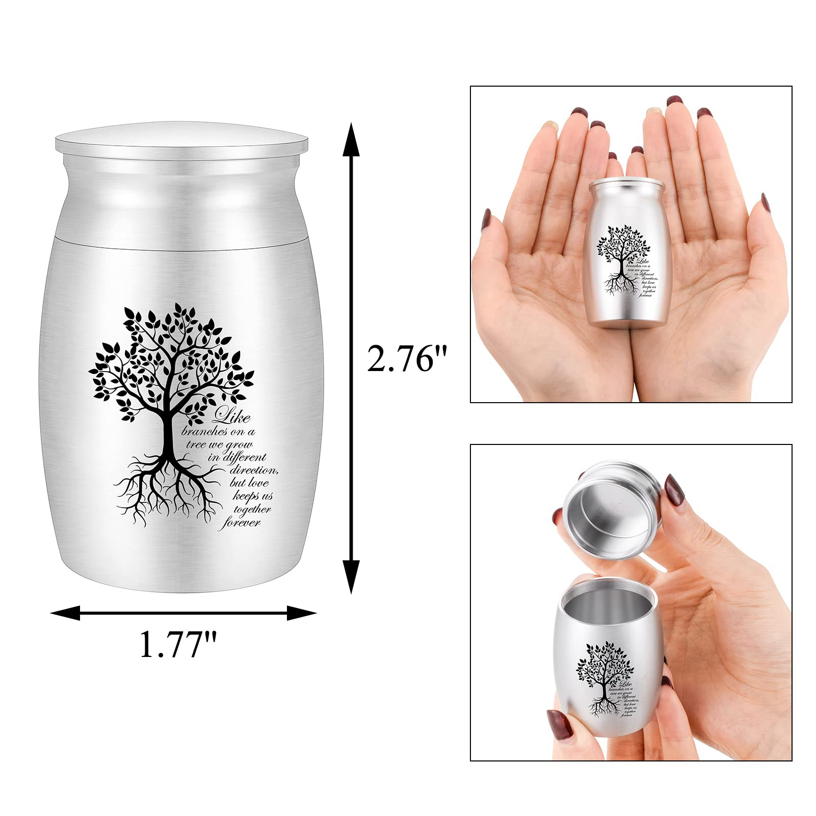 7 4.5cm Tree of Life Stainless Steel Small Urn for Human Pet Ashes Keepsake Gift