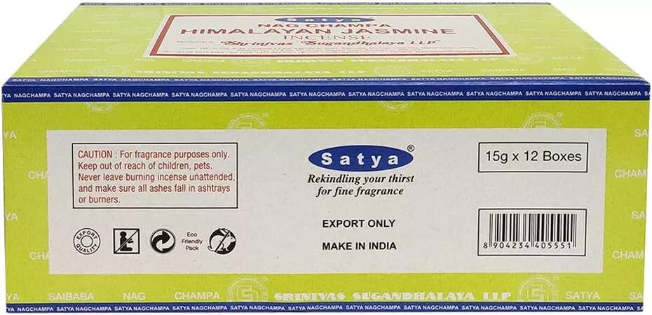 Satya Nag Champa Himalayan Jasmine Incense Sticks, 15g x 12 Boxes