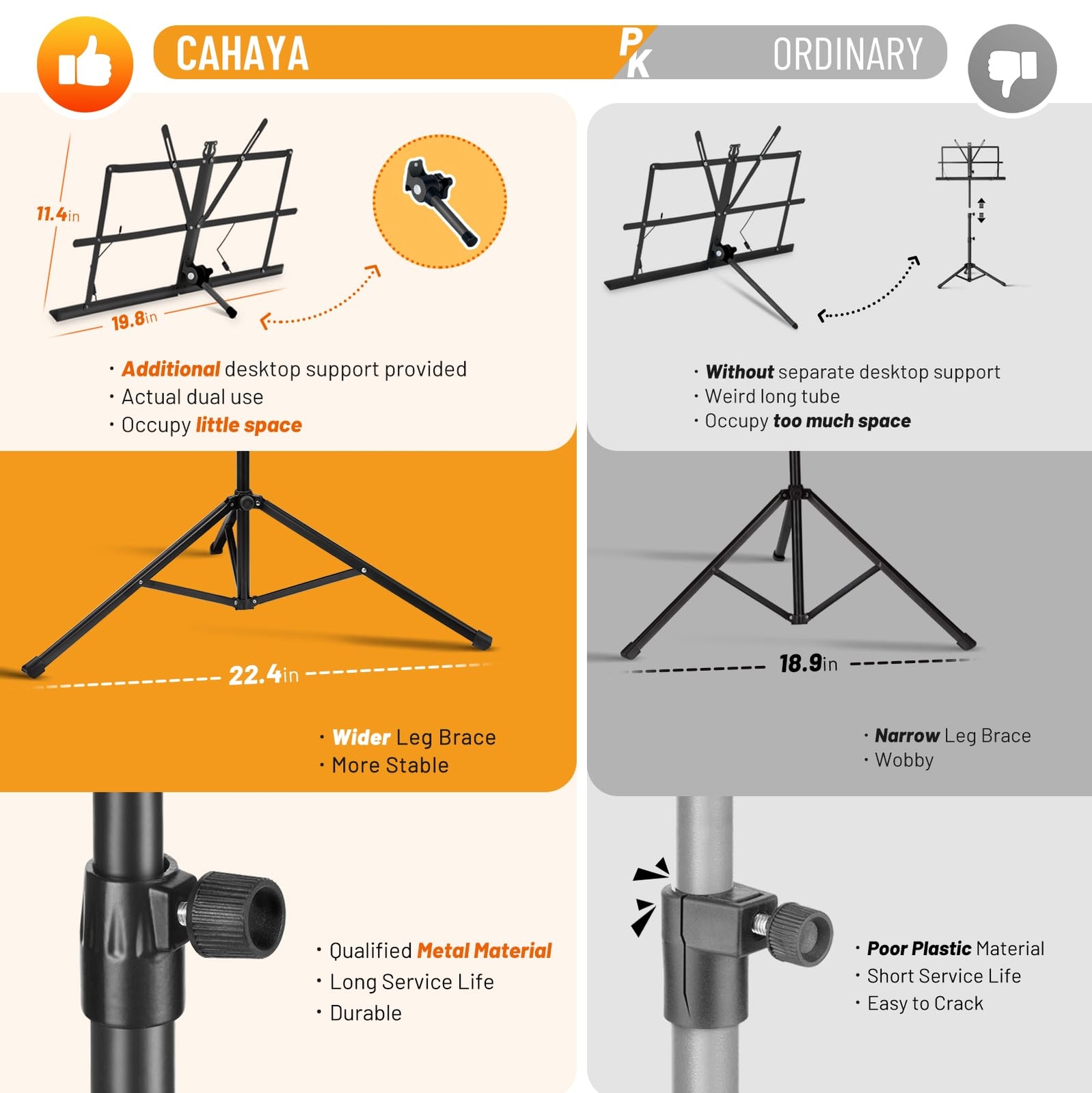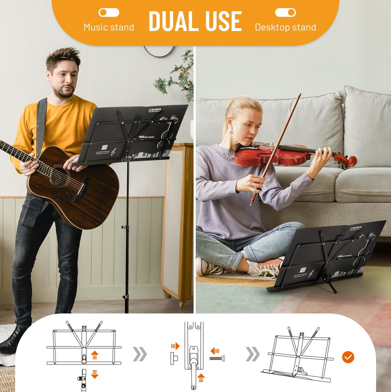 2 in 1 Dual Use Extra Stable Reinforced Folding Sheet Music Stand Desktop B...