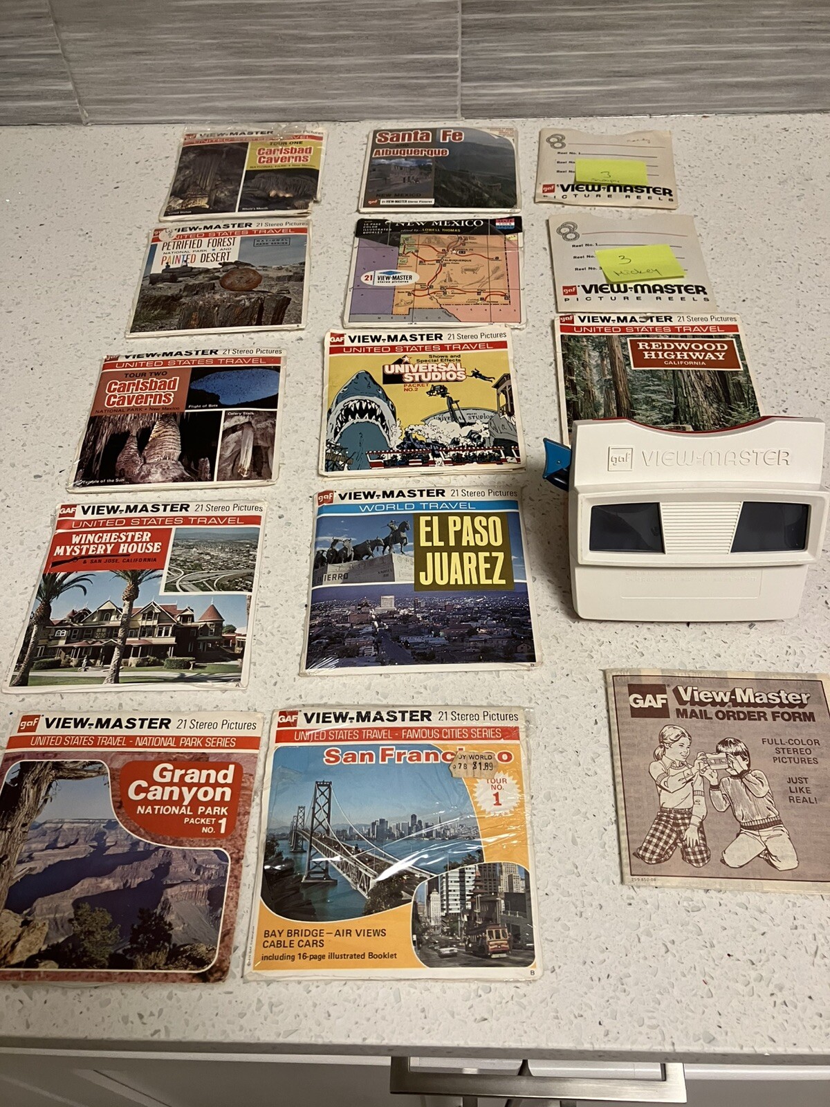 Vintage 1970 s GAF View-Master Viewer Red White Blue W/39 Disk Bundle Tested USA