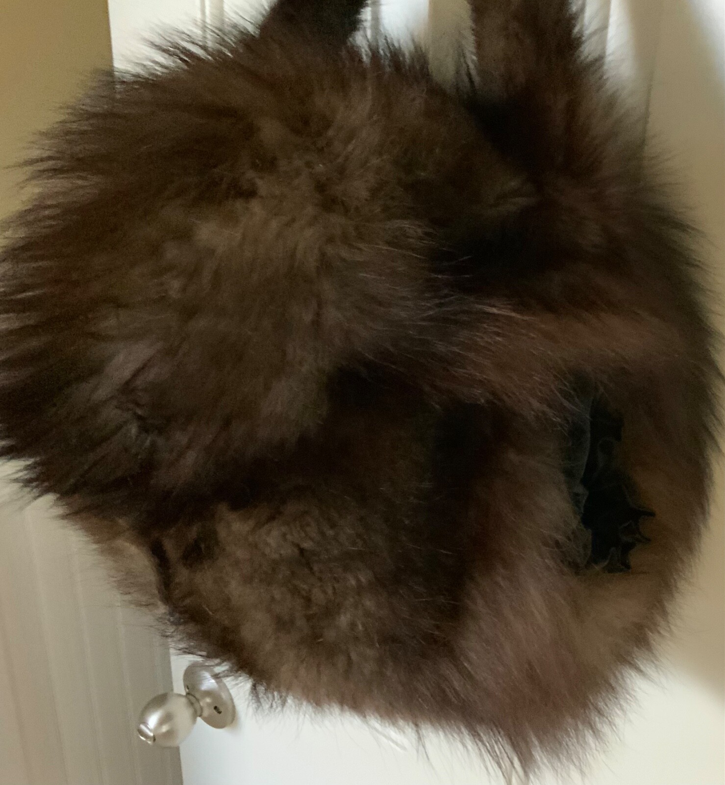 Vintage 13x13 Real Fox Fur Muff Hand Warmer Silk Lined Purse Wristlet