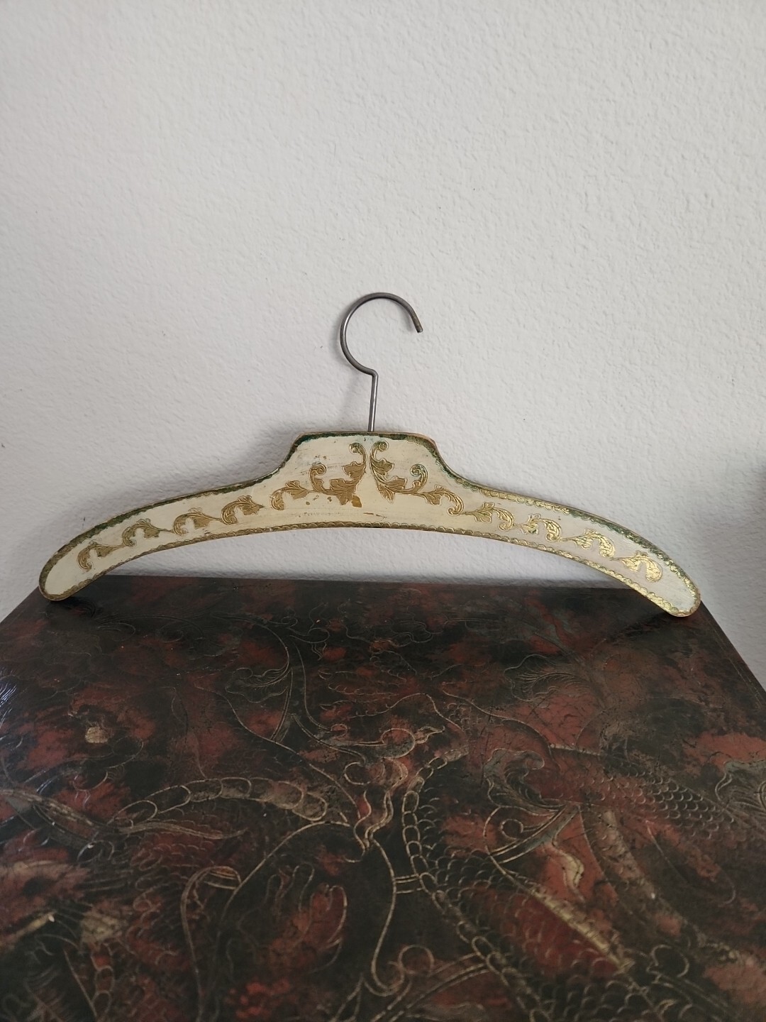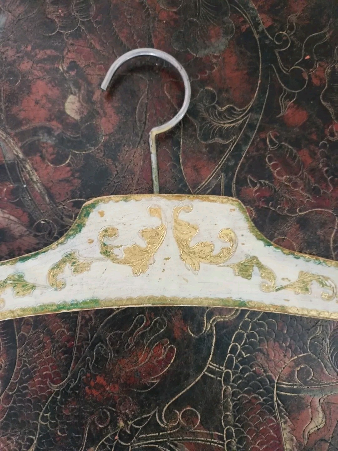 как выглядит Antique Wooden Hanger Hand Carved Wood Gold Painted Hallmarked -Made In Italy фото