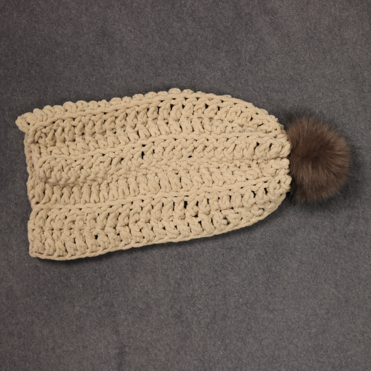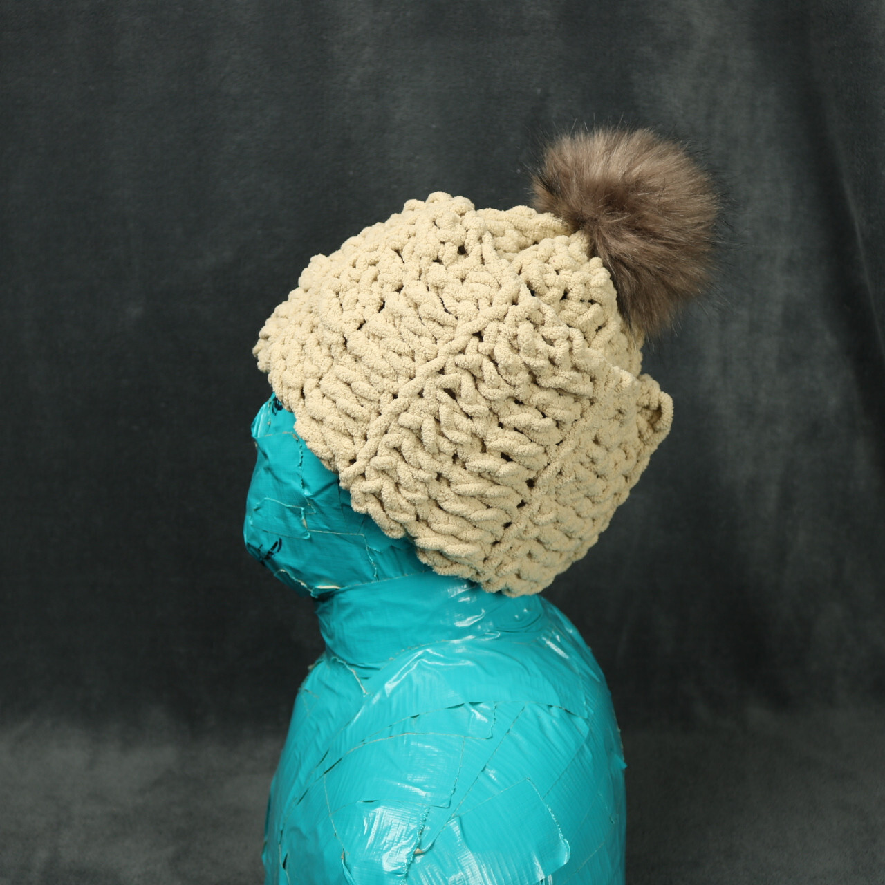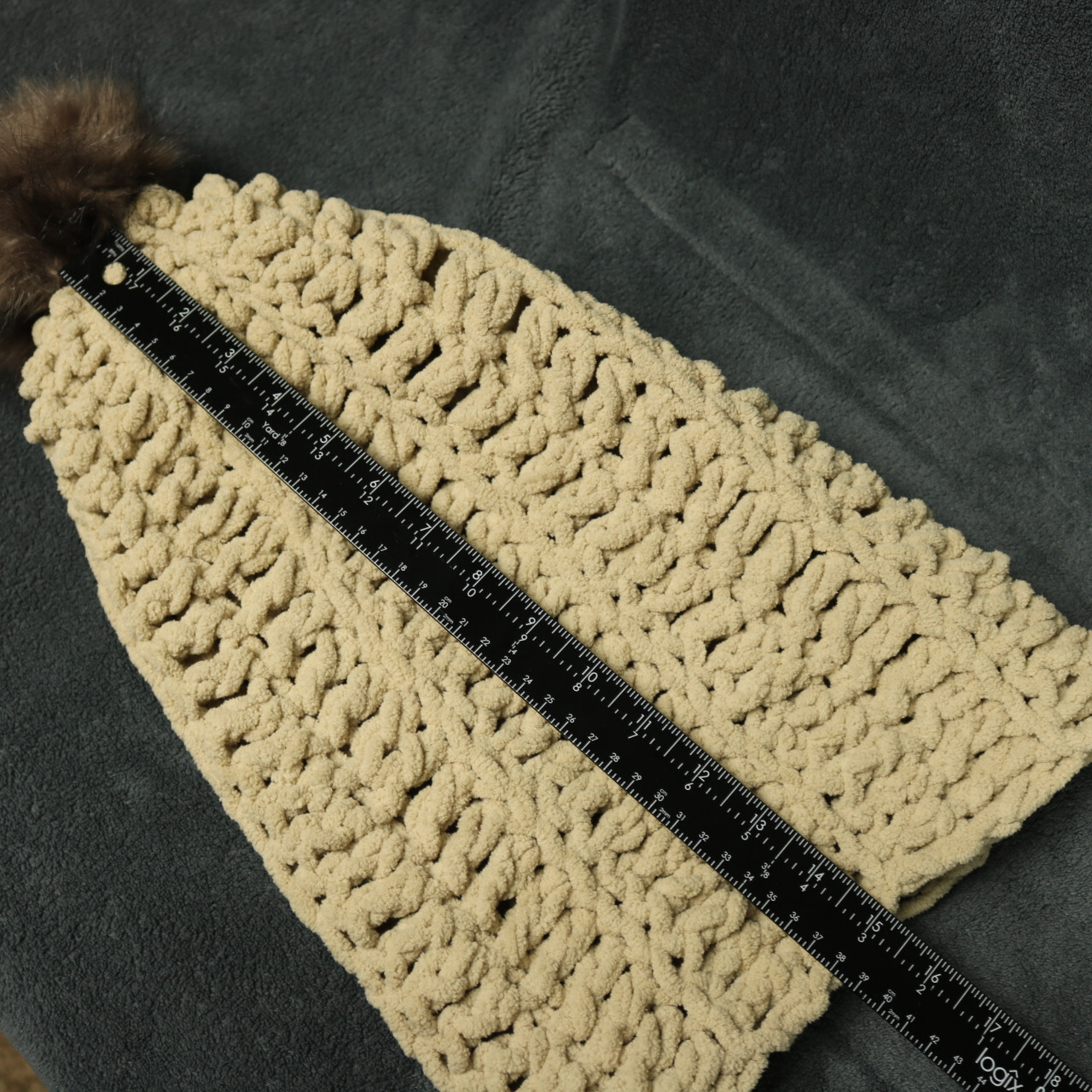 Chunky Knit Faux Fur Pom Pom Winter Hat Beanie Tan One Size