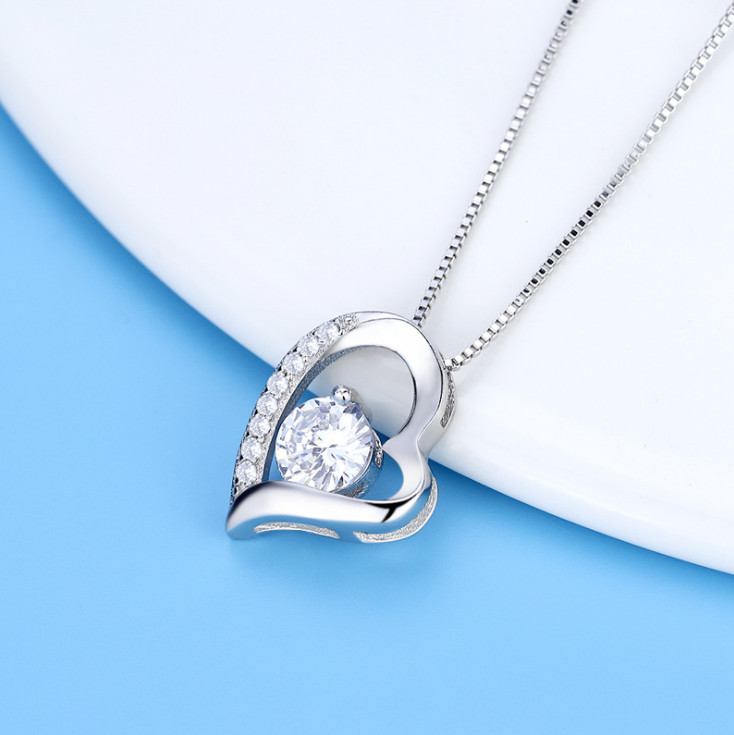 925 Sterling Silver Heart Clear Cubic Zirconia Pendant 18 Necklace Gift Box G10