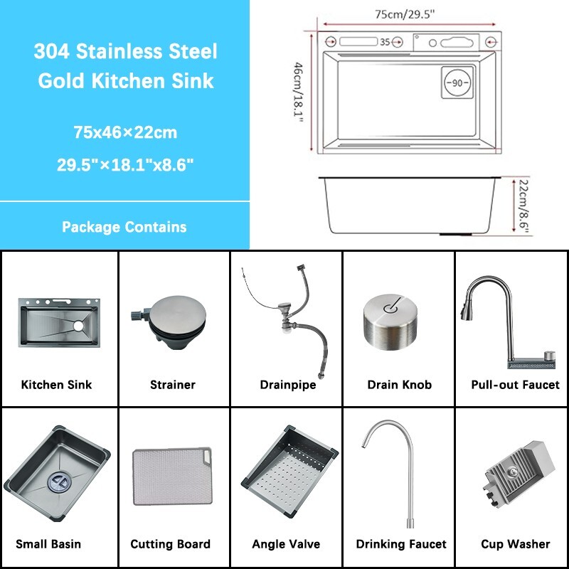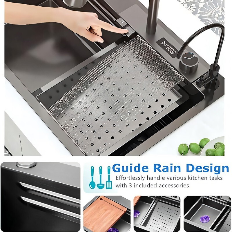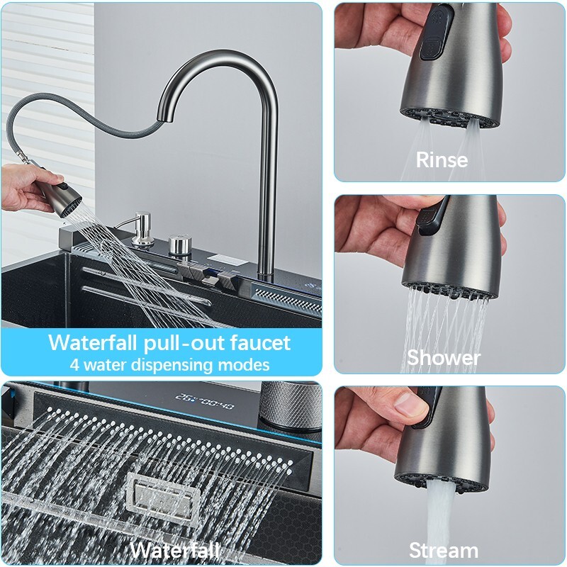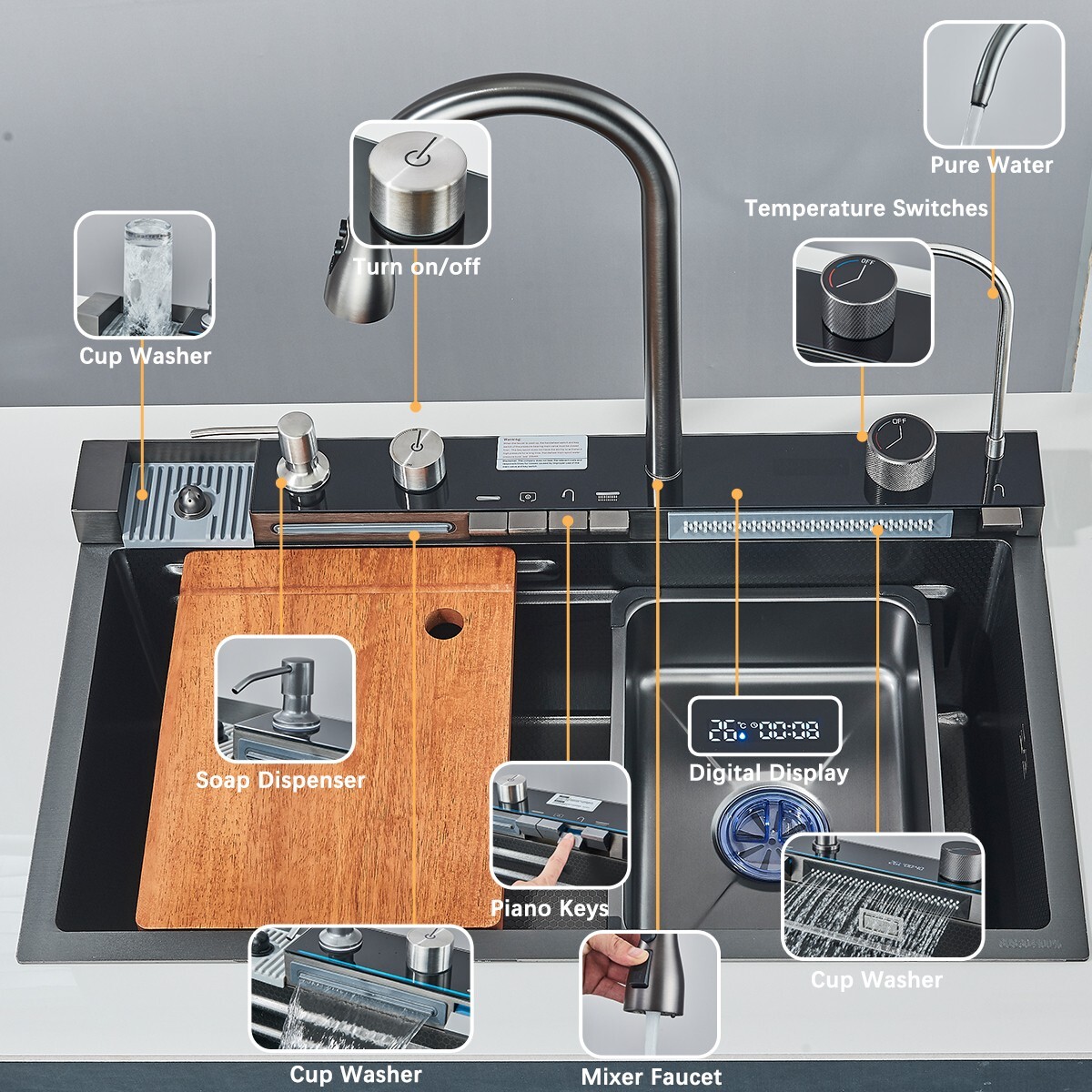 Items Included: Basin Waste, Bottle Trap, Tap, Waste Trap, Single Bowl, Pull Out Faucet, LED Display, Drinking Faucet