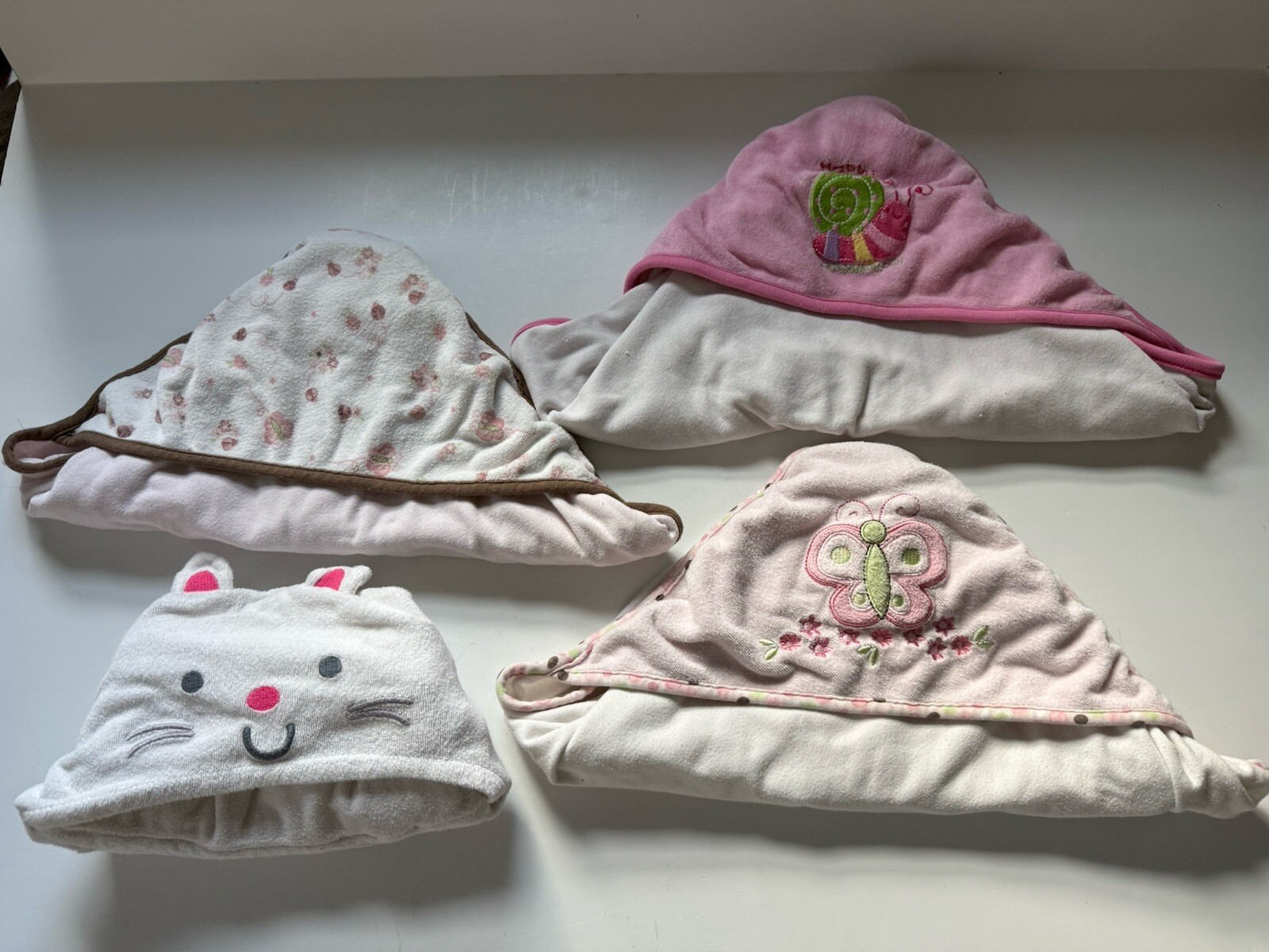 Lot of 4 Baby Hooded Bath Cotton Towels Assorted Brands 30W x 33H Pink