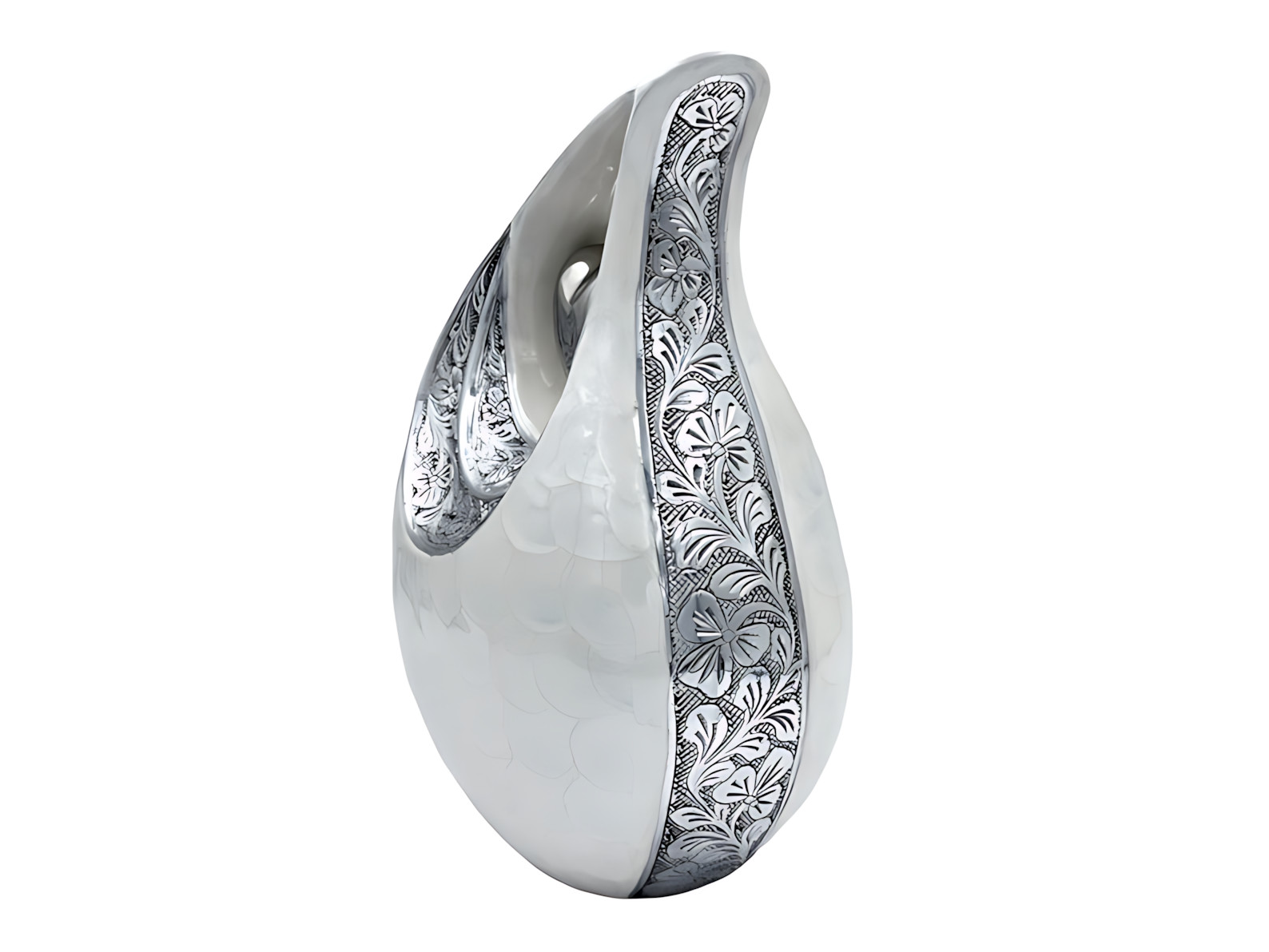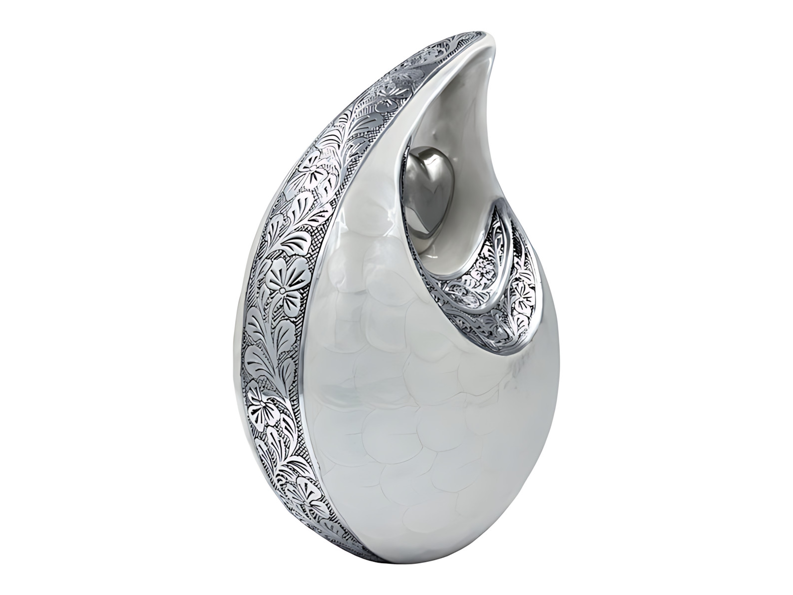 Subject: Elegant Silver Teardrop Urn with Heart – A Timeless Tribute