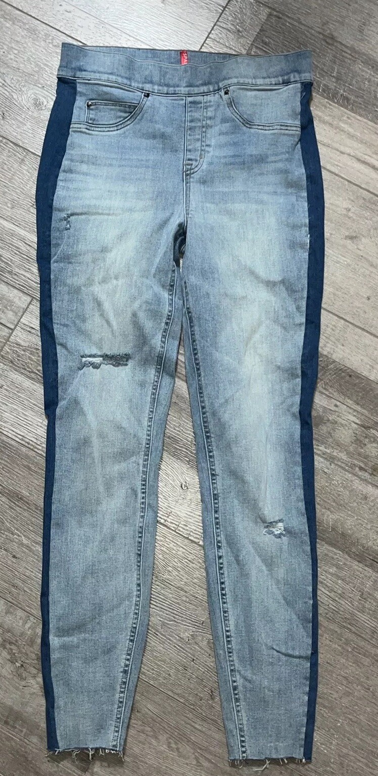 SPANX Jeans Women's small Blue Two Tone Distressed Ankle Skinny Pull On Legging