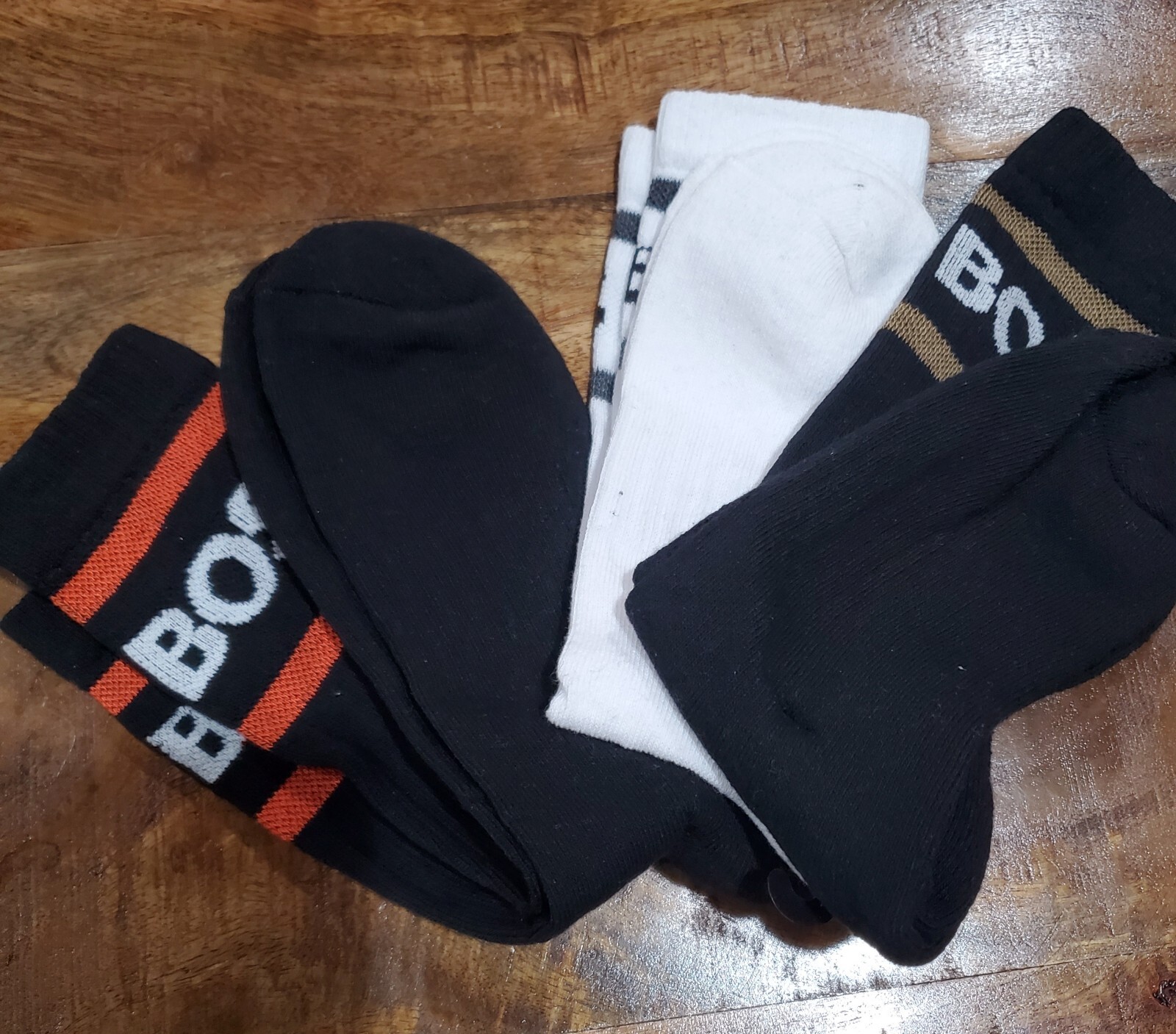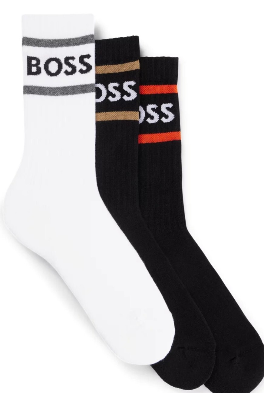 NEW HUGO BOSS Three-pack of short socks with stripes and logo Made in Italy.