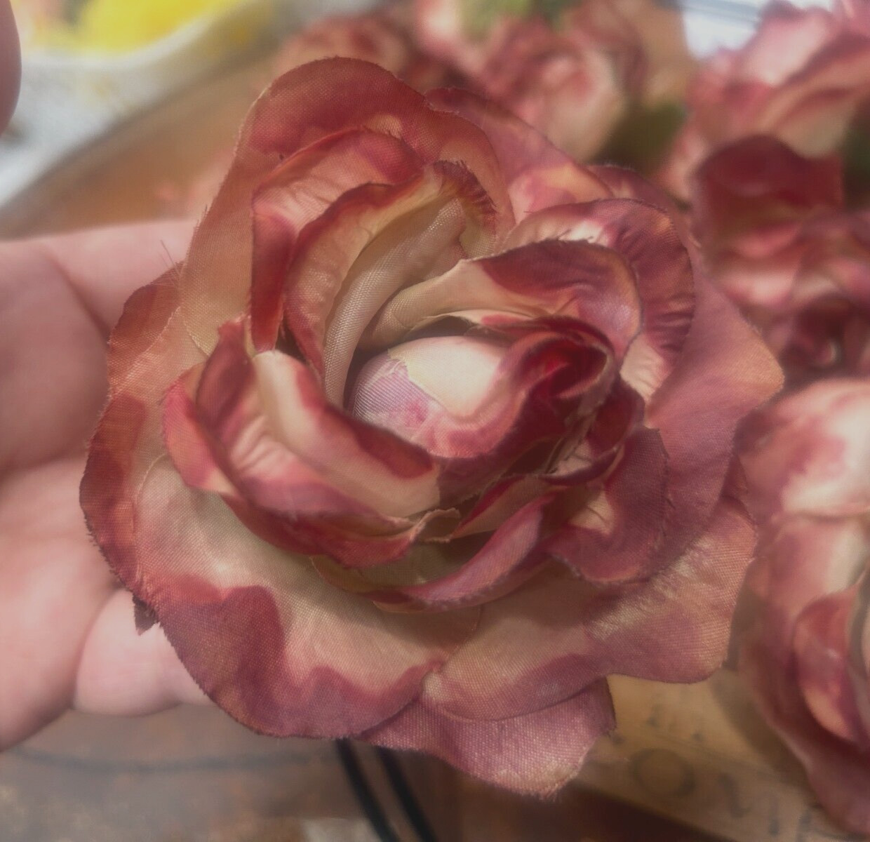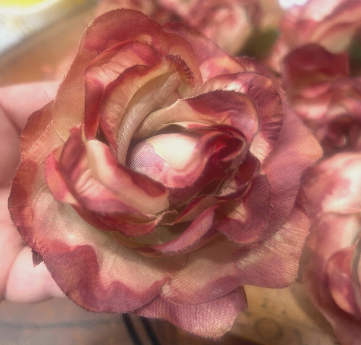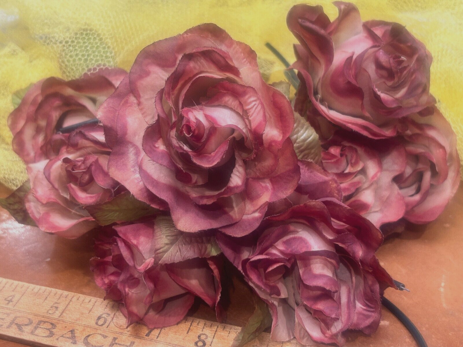 как выглядит vintage millinery silk flower rose 4" raspberry sage 1pc made in Japan фото