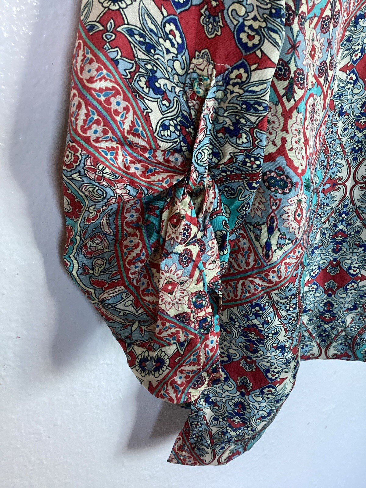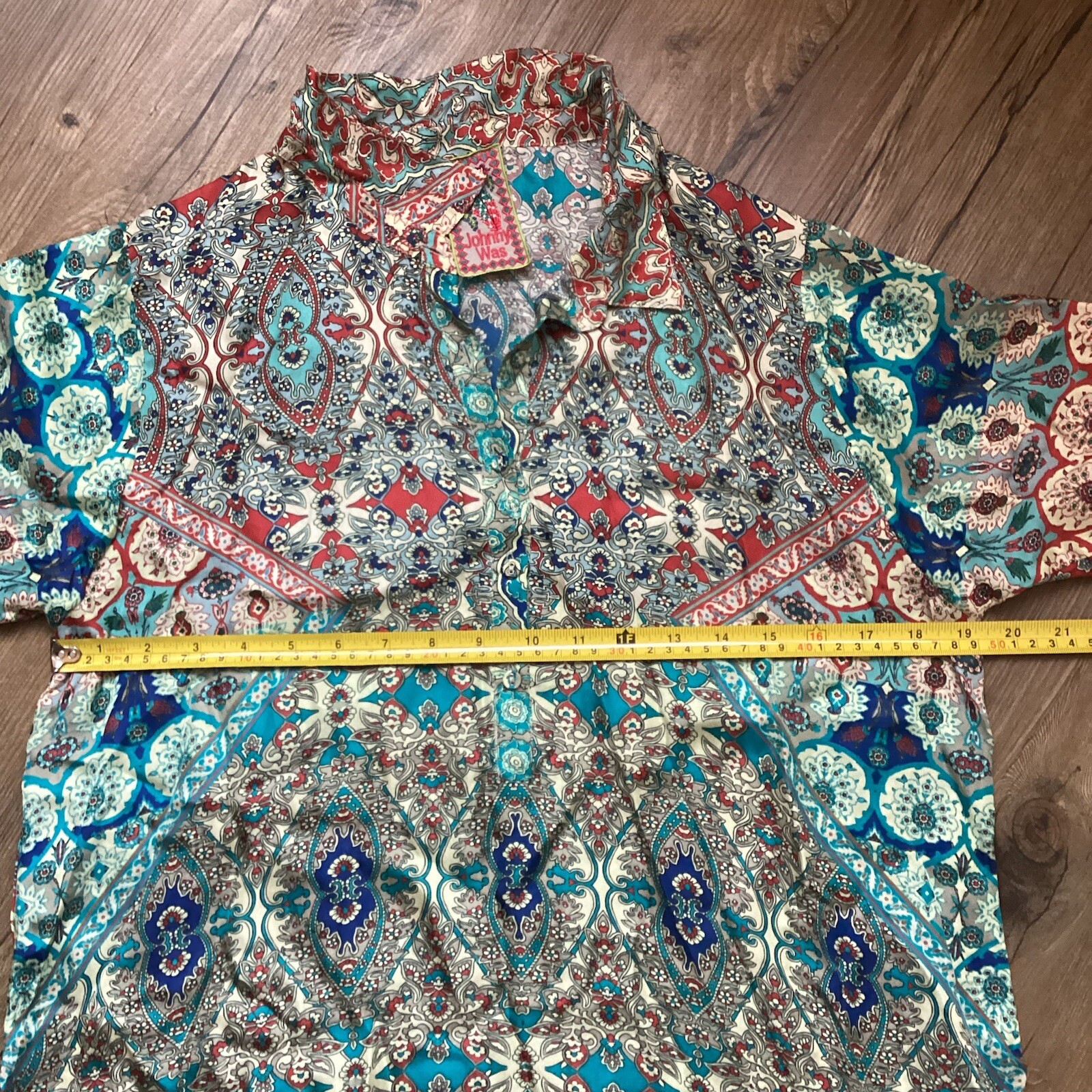 как выглядит Johnny Was 100 Silk Button Up Top Long Sleeve READ фото
