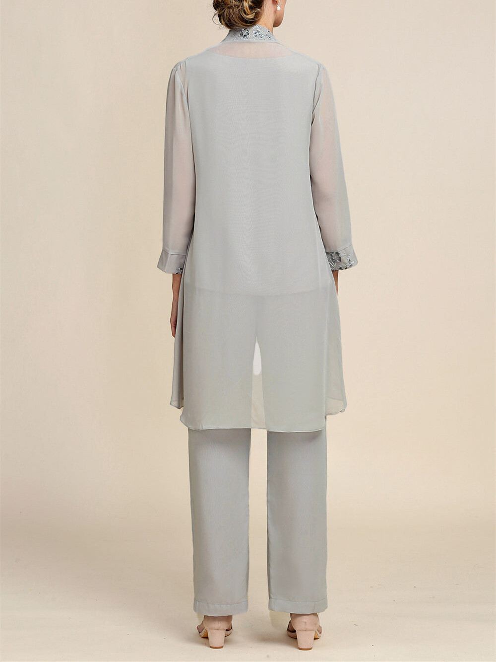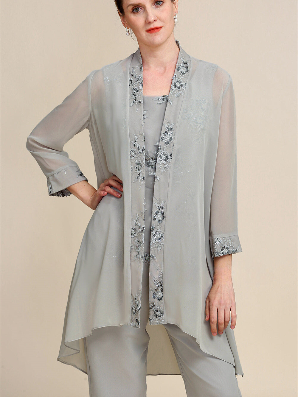 как выглядит Grey Chiffon Mother Of The Bride Dress Customized Coat Vest And Pants Set фото