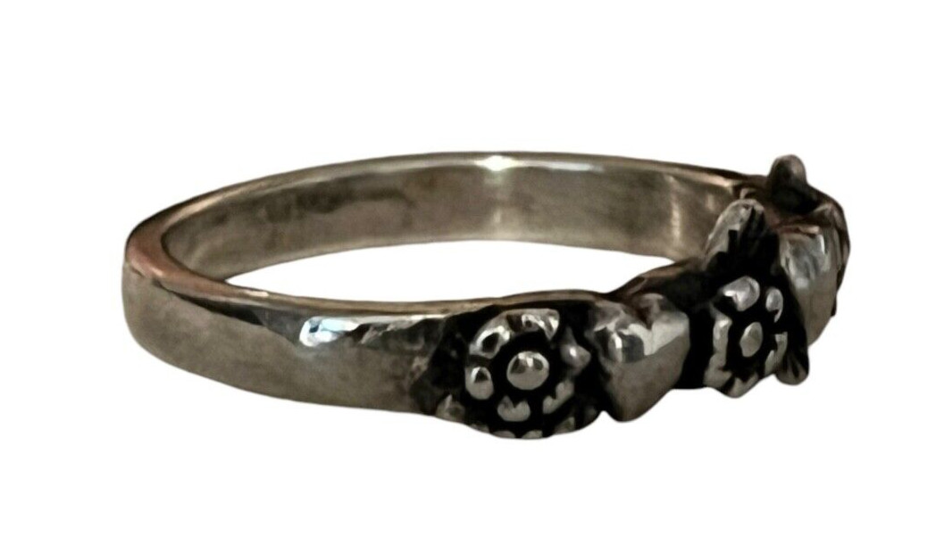 Vintage Sterling Silver Ring Hearts and Flowers Band Ring 925 Size 6