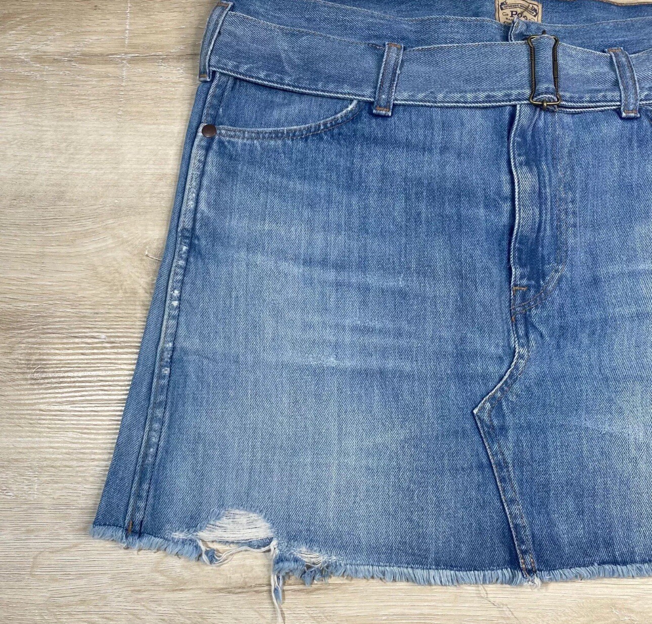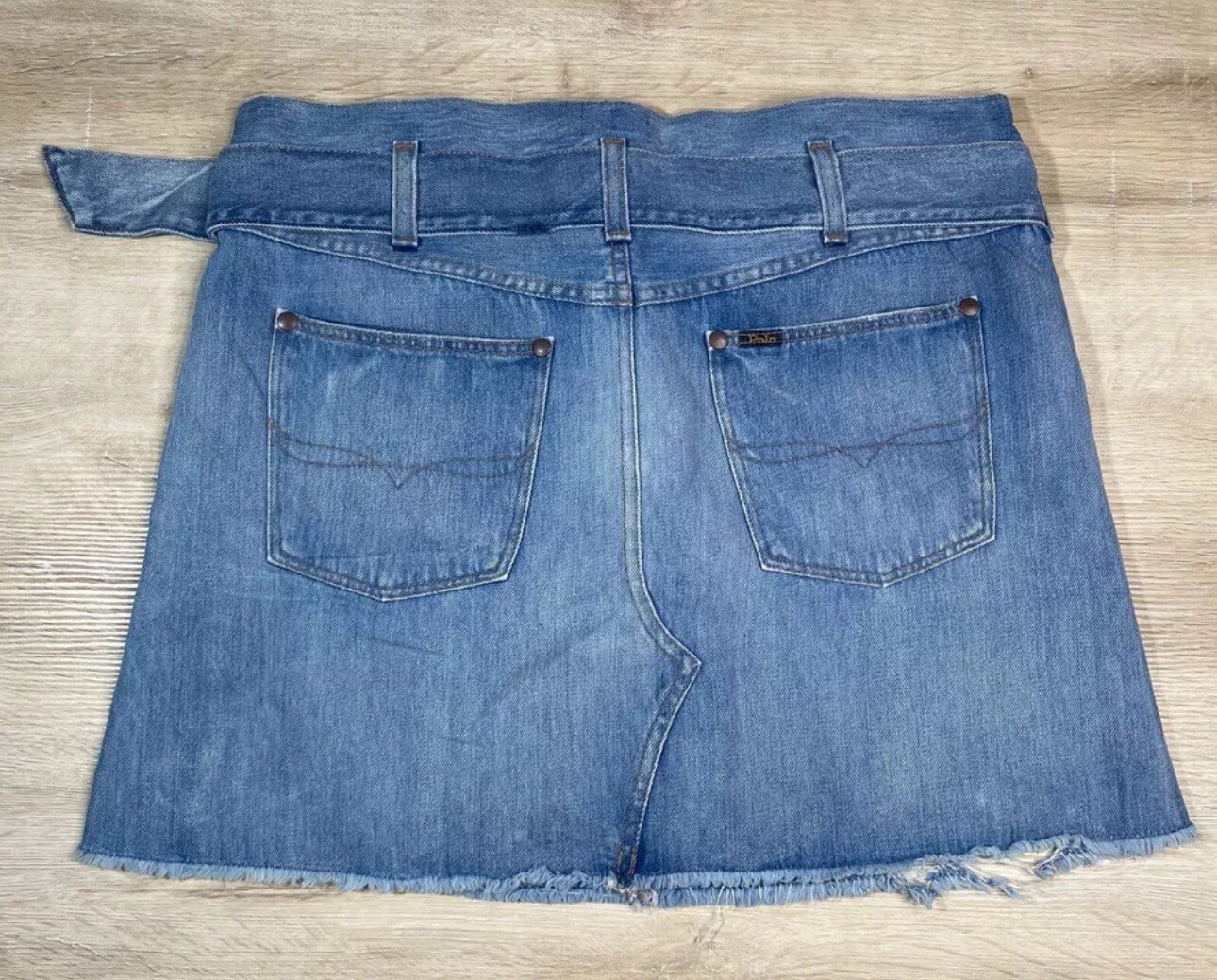 как выглядит NWT Polo Ralph Lauren Womens Mini Skirt Blue 32 Denim Belted Distressed 168 фото