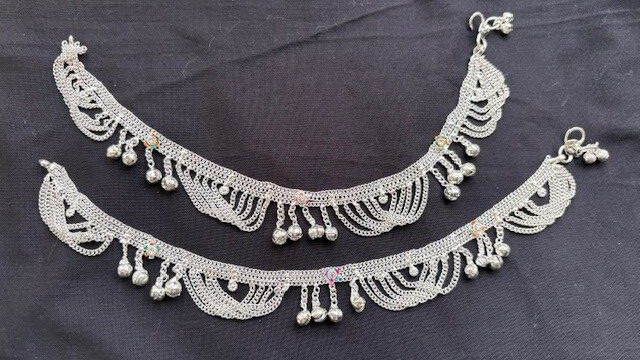 Tribal ethnic silver women Indian payal bells foot jewelry anklet chain tassel