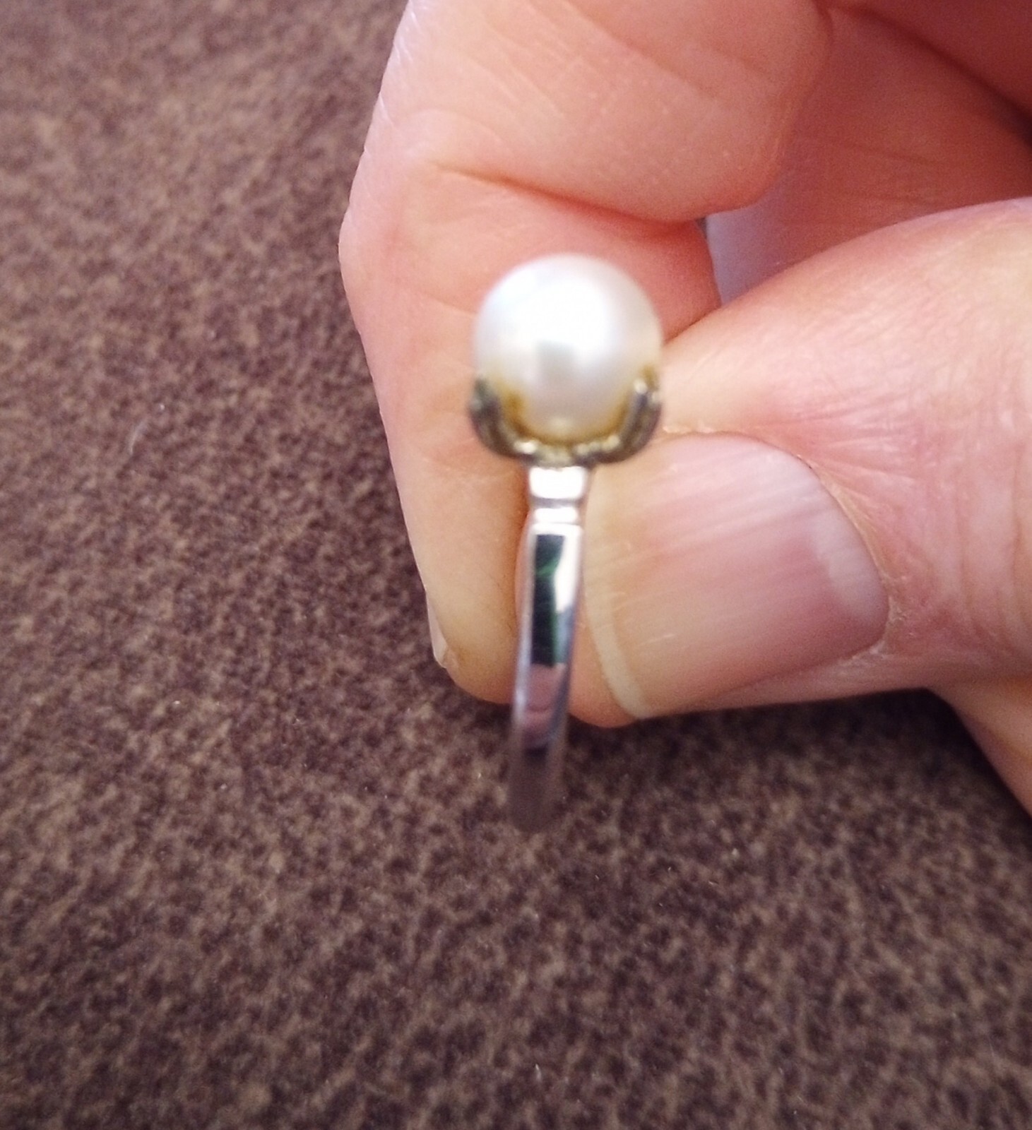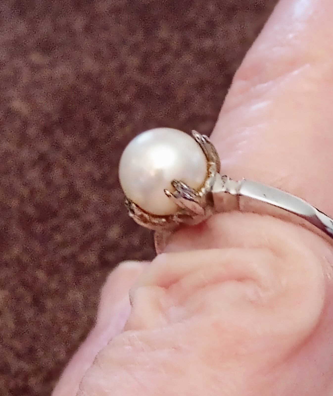 как выглядит VINTAGE SINGLE 7mm PEARL STERLING SILVER 925 RING SZ 6.25 RETRO PRETTY 1960s фото