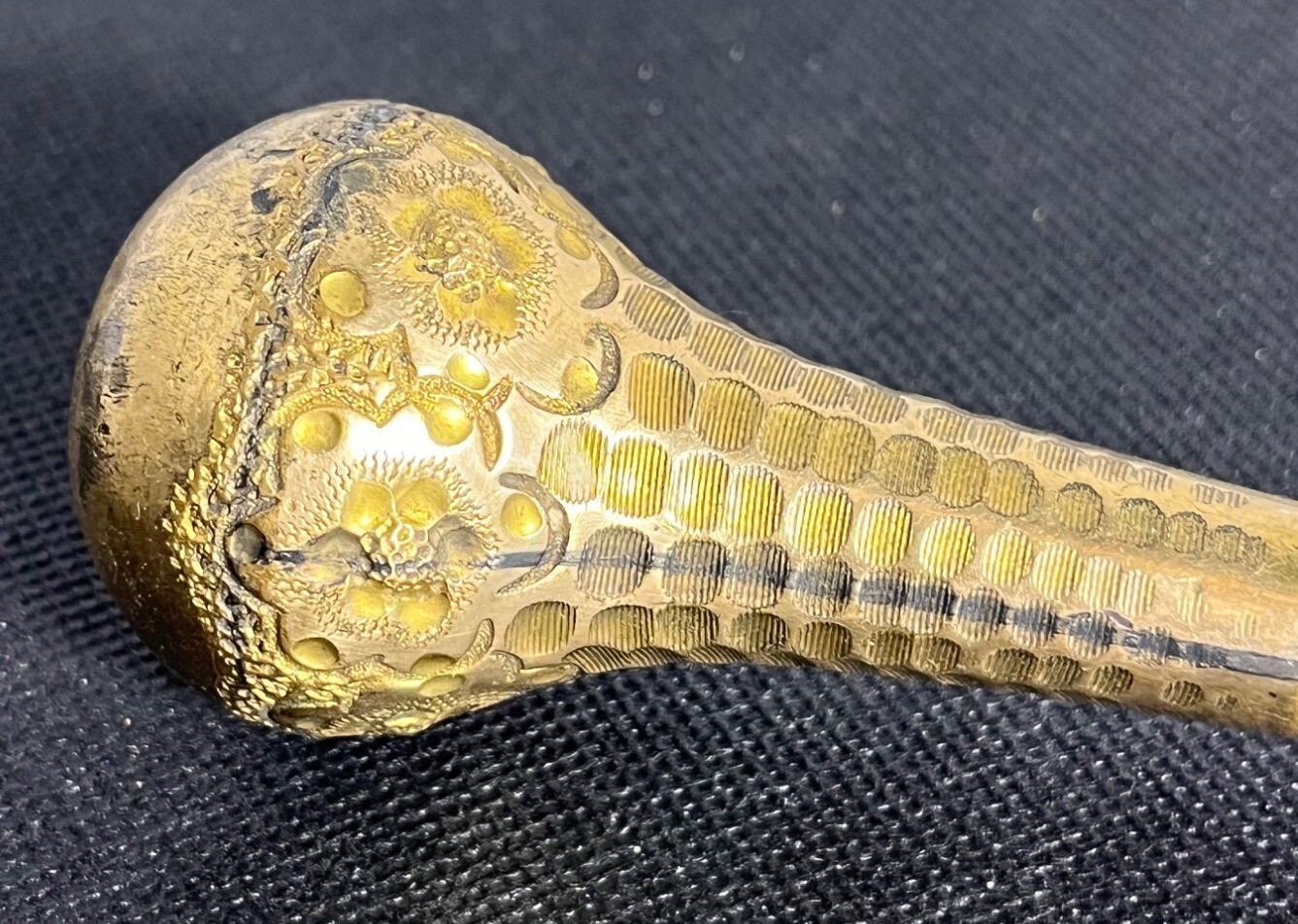 Antique Victorian Gold Mother of Pearl Umbrella Handle Etched Floral Design