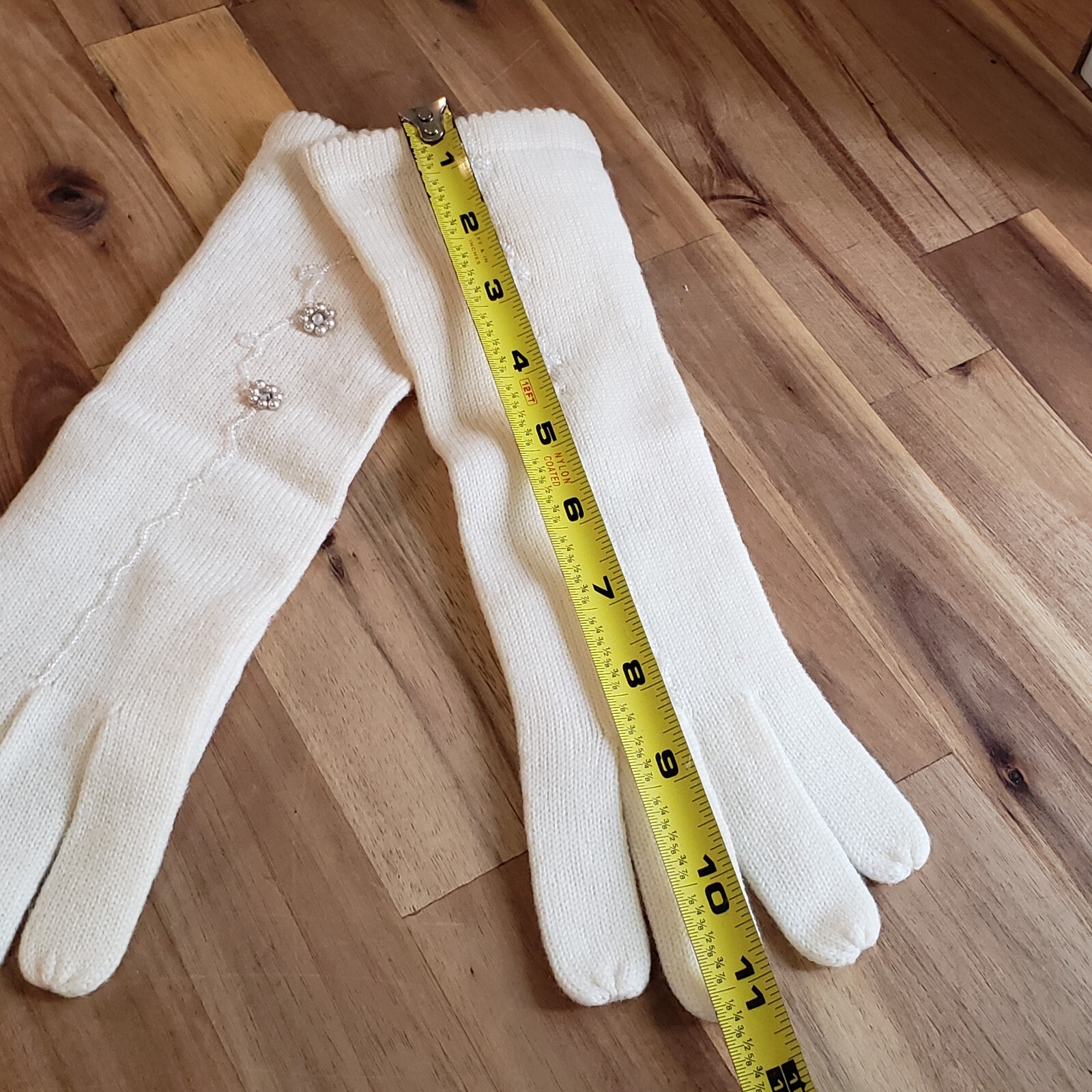 как выглядит Vintage Shalimar Womens M Wool Beaded Gloves Ivory Japan New See Description фото