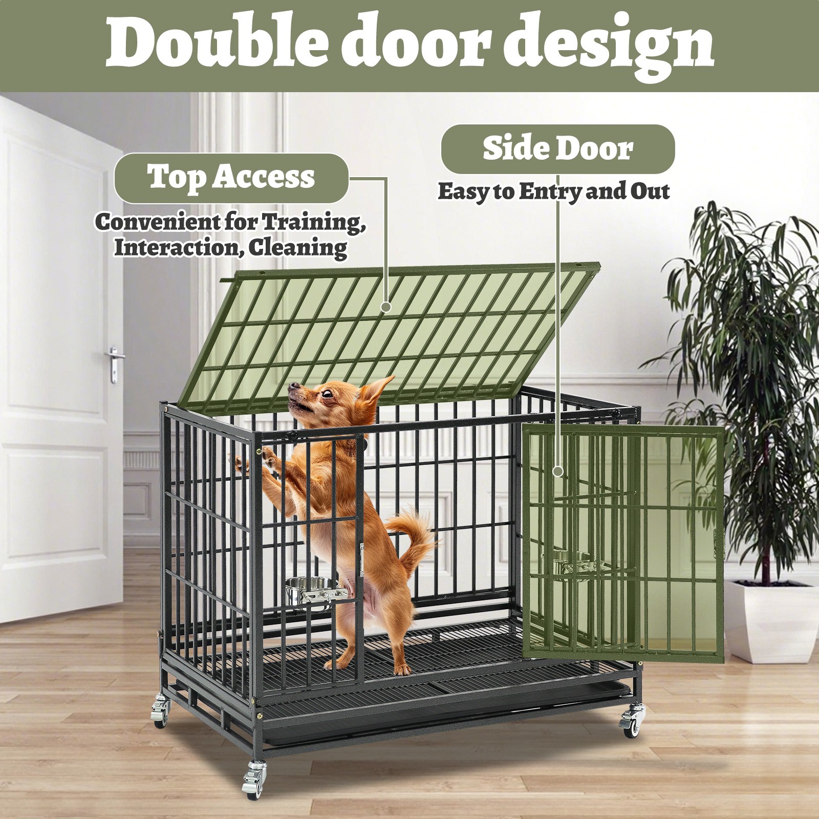 36 Inch Heavy Duty Dog Crate Cage Kennel for Small/Medium Dogs w/Feeding Bowls