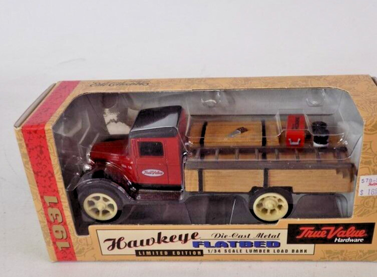1997-1931 Hawkeye-Die Cast Metal Flatbed Truck-True Value-1/34 Scale Bank NIB