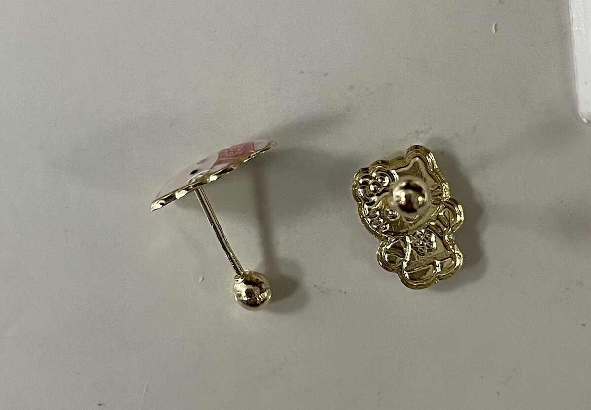 как выглядит Kitty Cat Stud Earrings 14K Solid Gold With Safety Backing фото