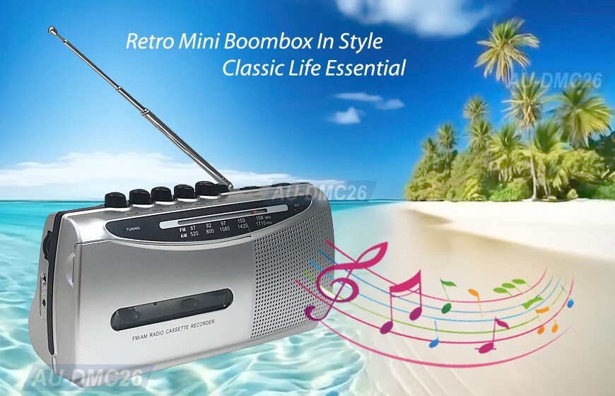 Classic Mini Portable Boombox Cassette Player AM FM Radio Tuner Recorder