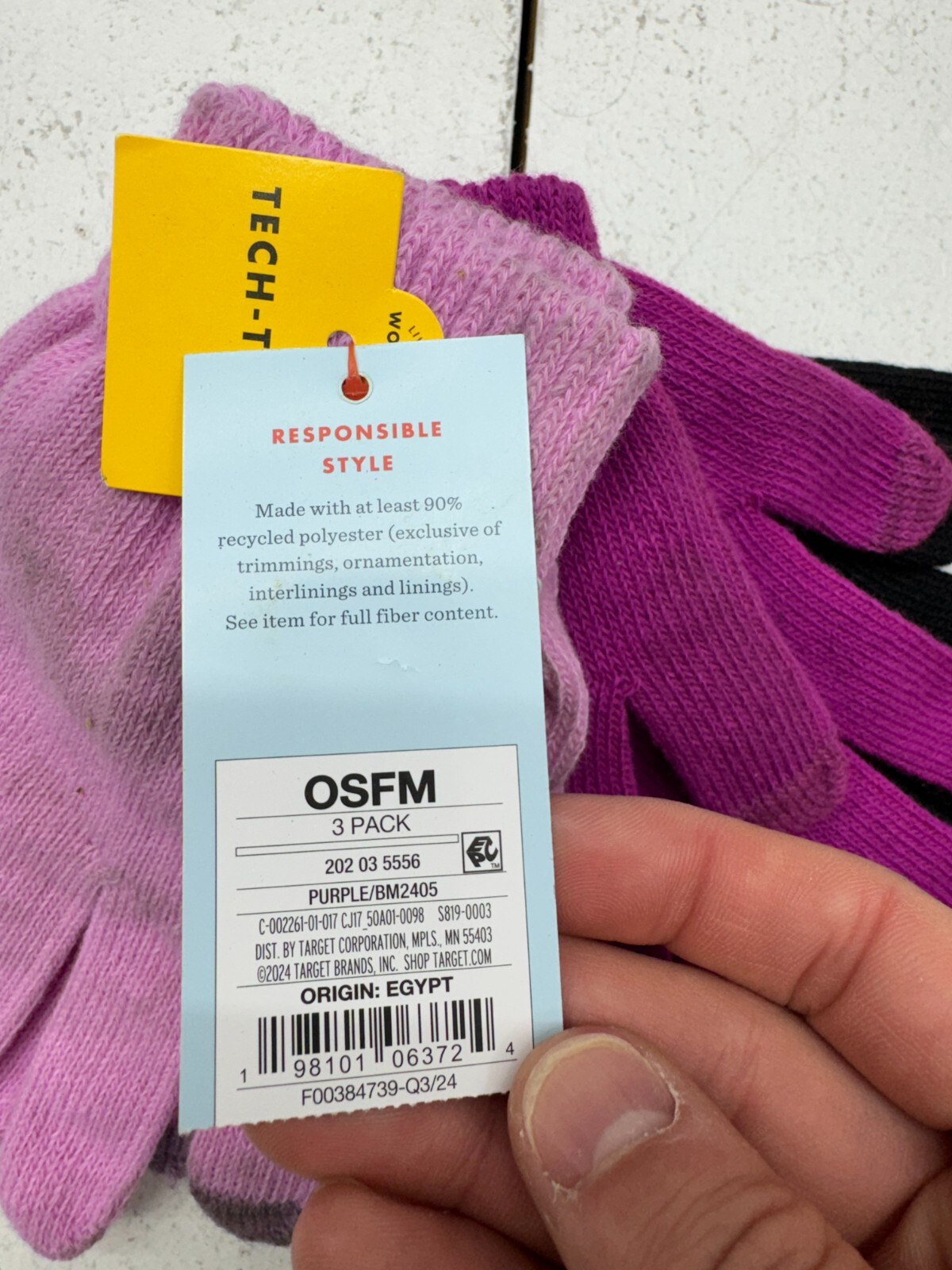 как выглядит Cat Jack 3 Pack Tech Touch Gloves Girls One Size фото
