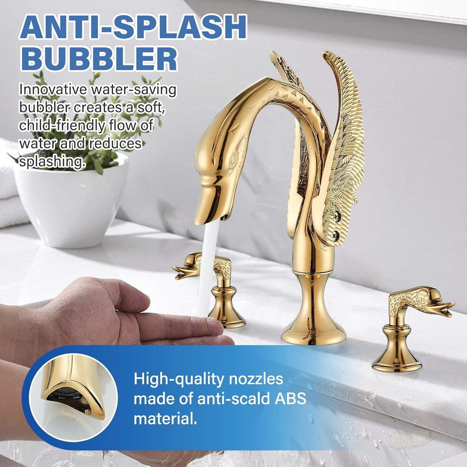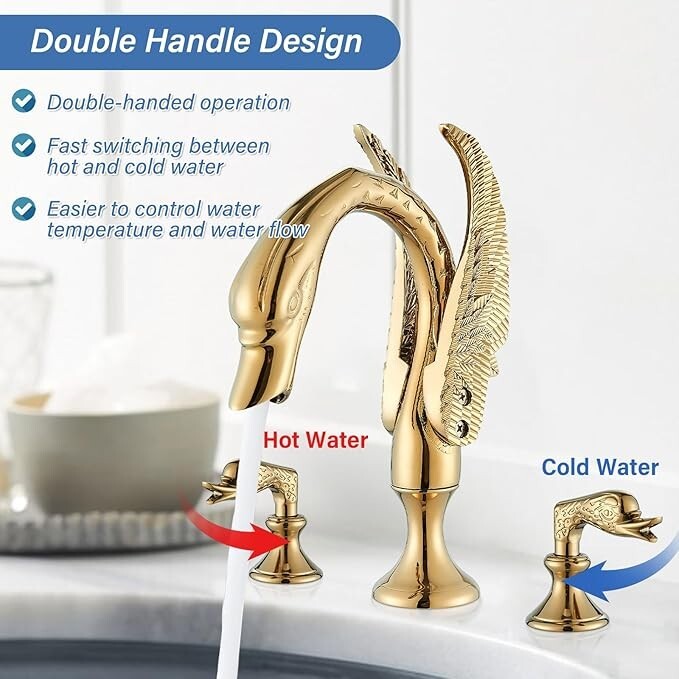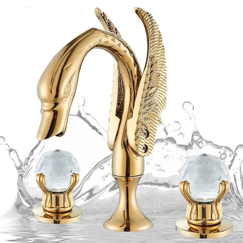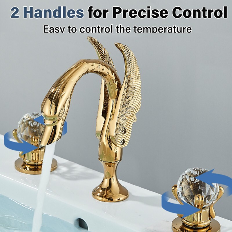 Luxury Modern Swan Bathroom Faucet 3Hole Dual Handle Basin Sink Vanity Mixer Tap