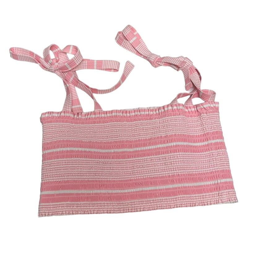как выглядит Minnow Striped Smocked Bikini Top Sz. M фото