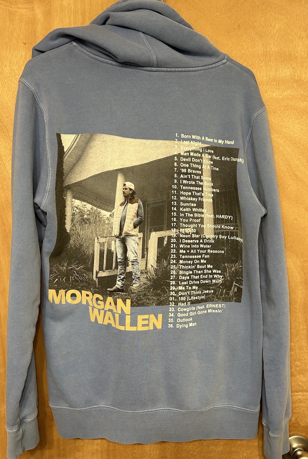 как выглядит Morgan Wallen Official Blue Hoodie Sweatshirt-One Thing At A Time Tour - Size S фото