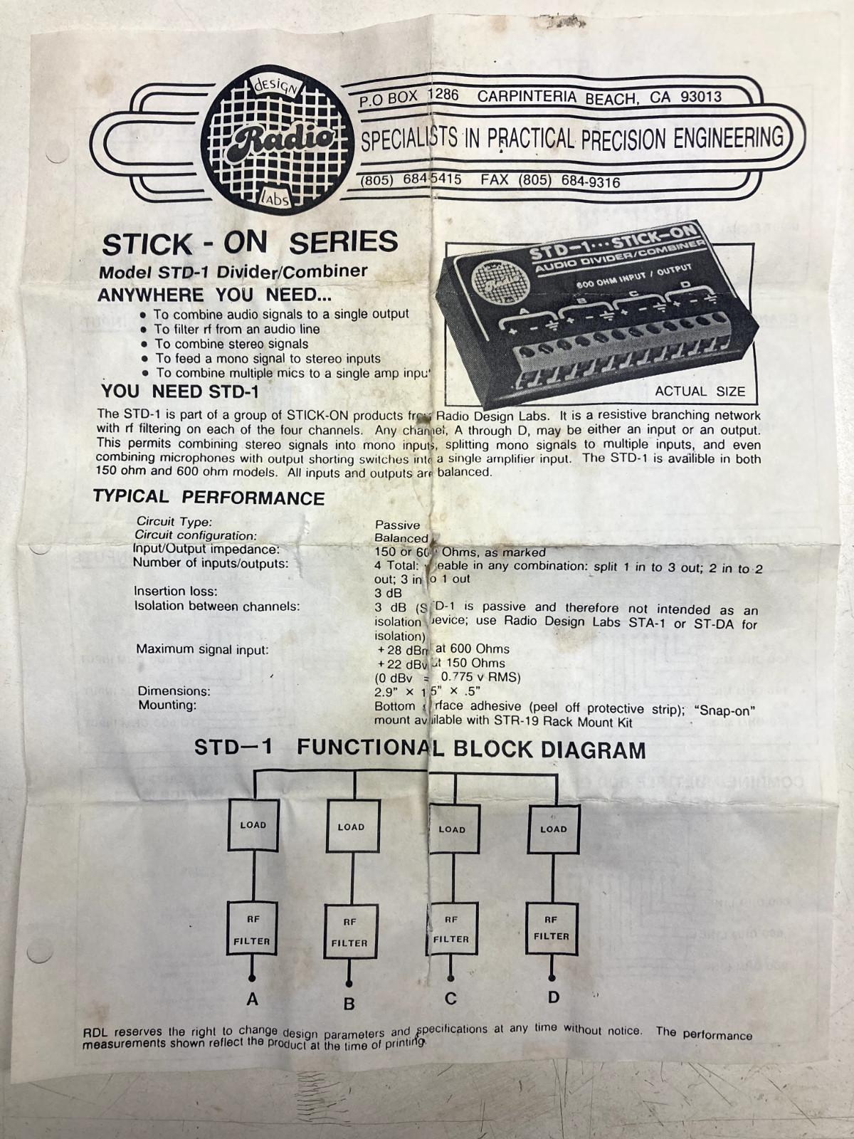 Radio Design Labs STD-1 Audio Divider Combiner 600 ohm RF Filter