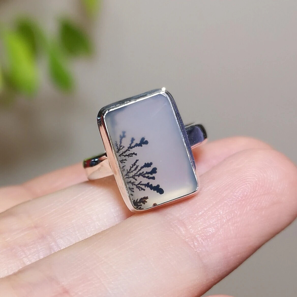 Dendritic Agate Sterling Silver Ring US size 6.25