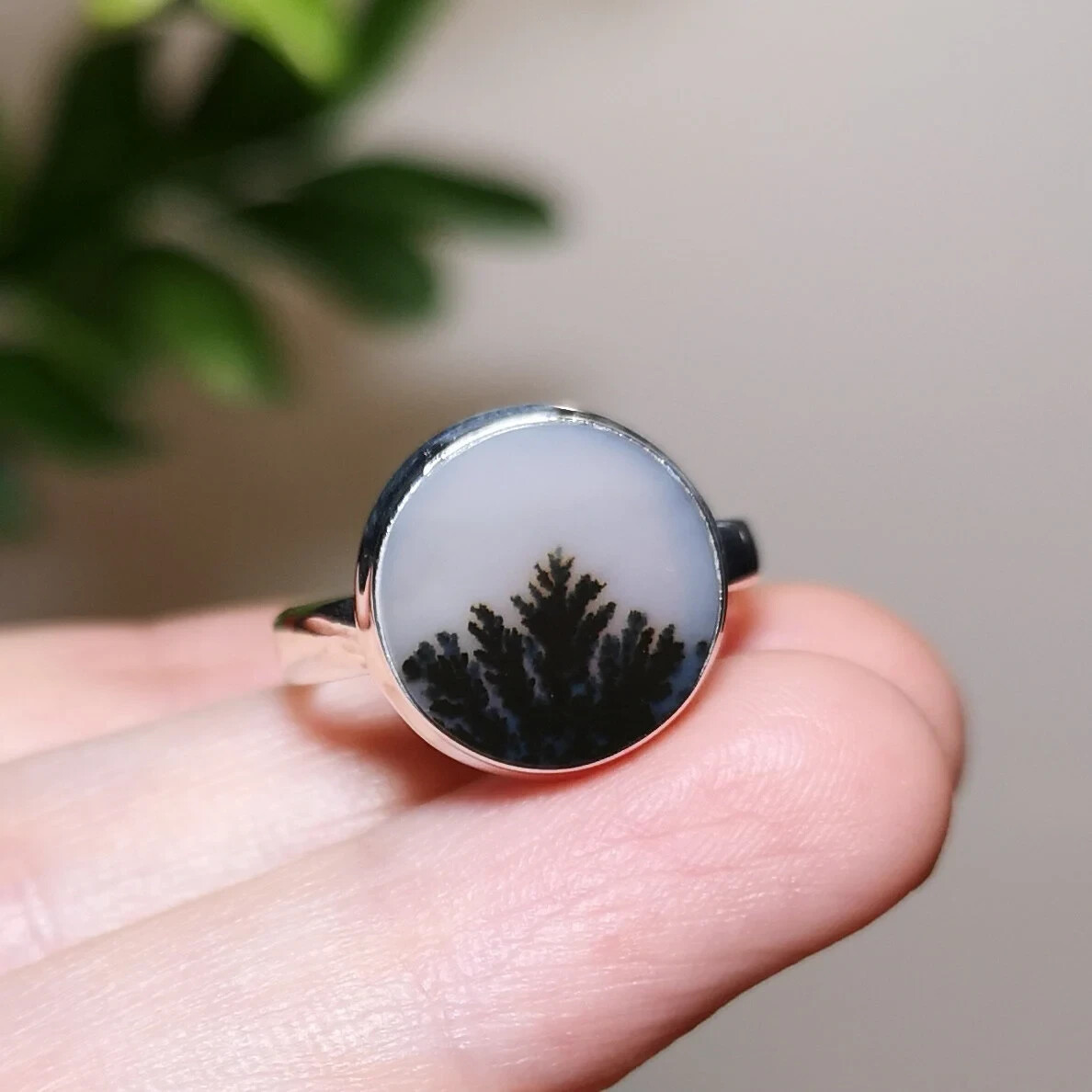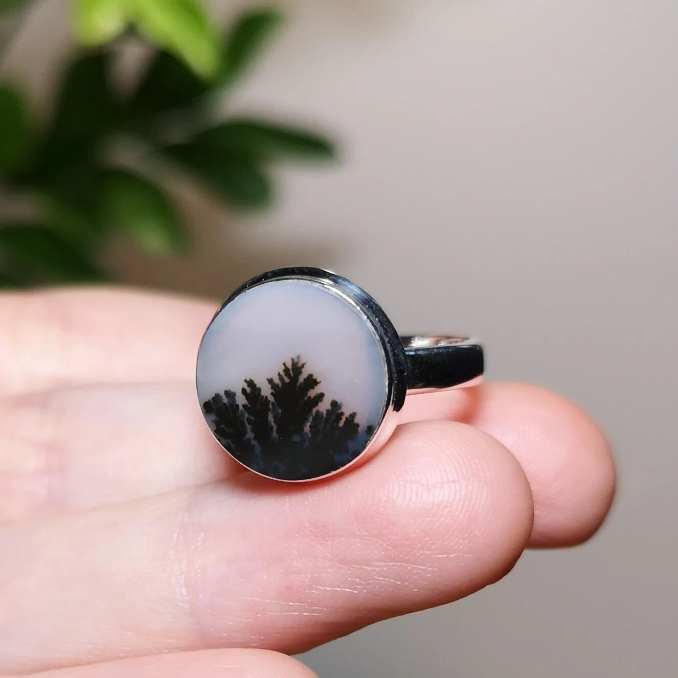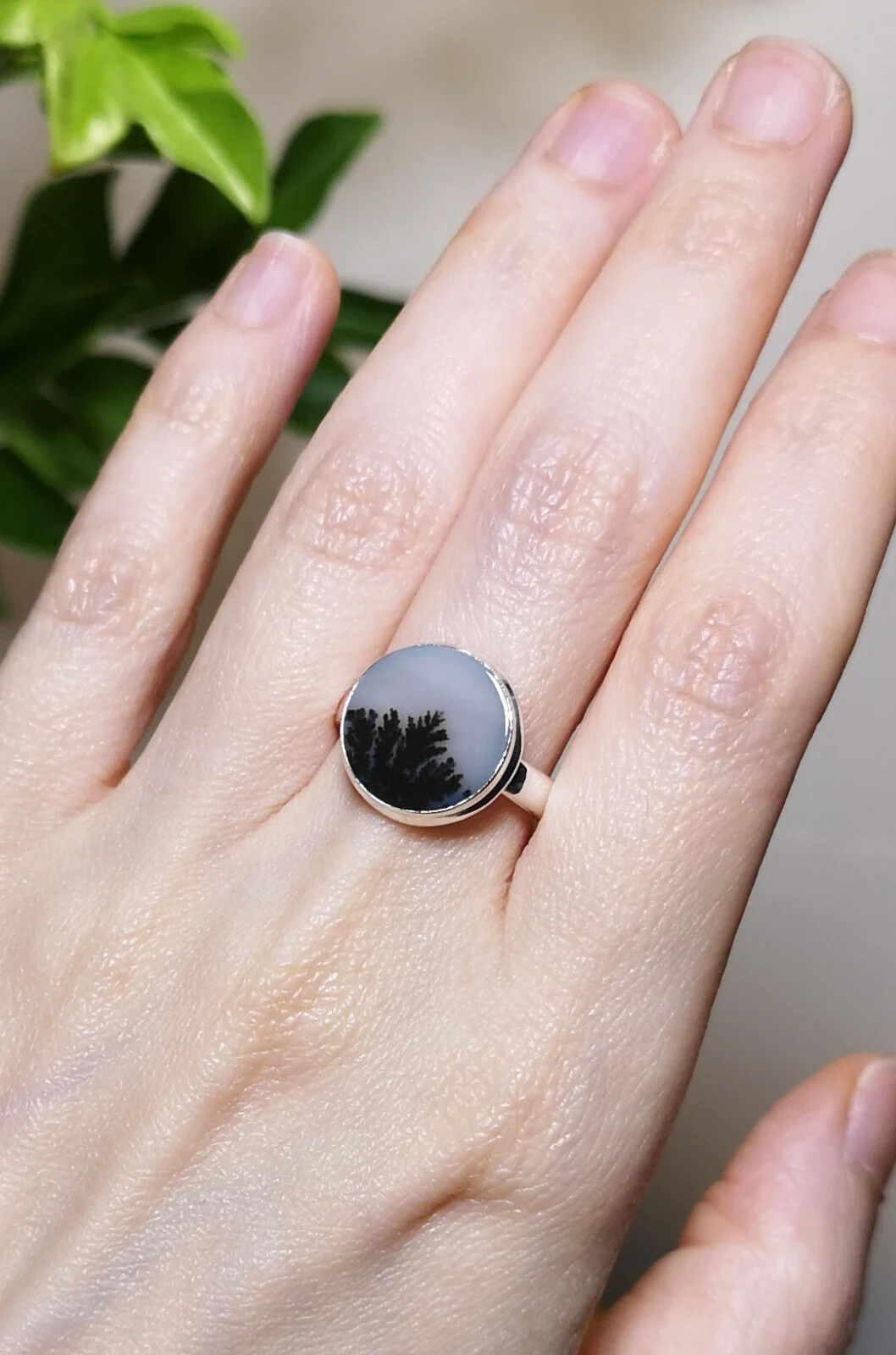 Beautiful Dendritic Agate Sterling Silver Ring US size 8.75