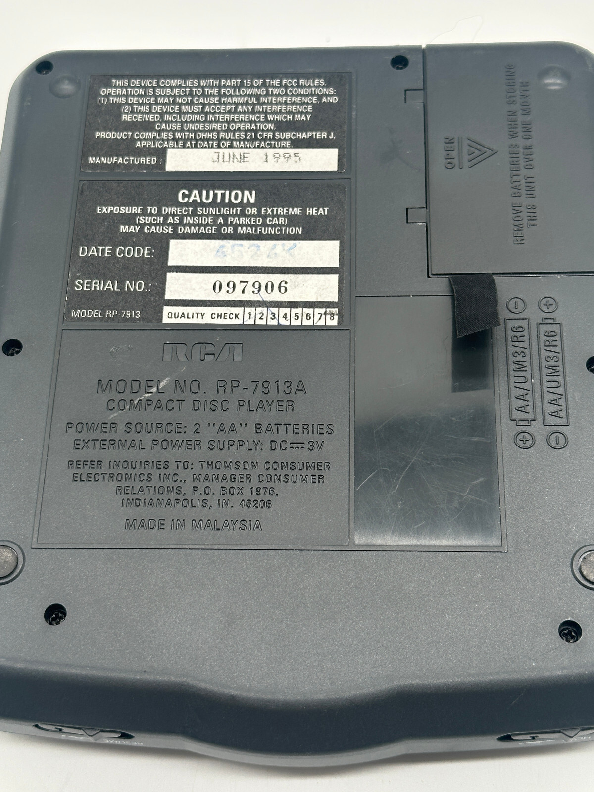 RCA CD Player RP-7913A Black- PARTS - NO POWER