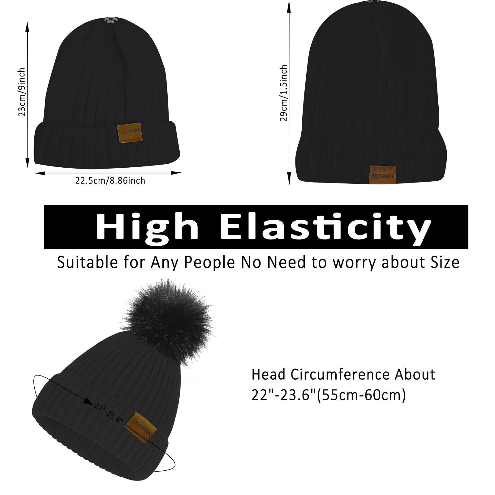 Beanies for Womens Winter Knitted Beanies Hats with Faux Fur Pom Warm Knit Sk...