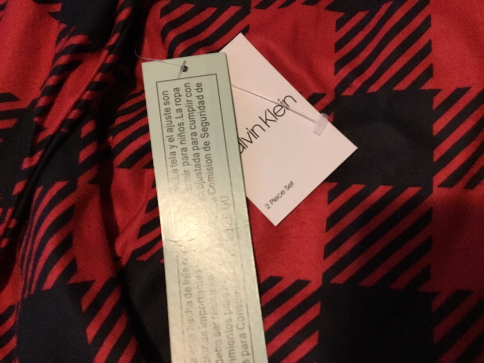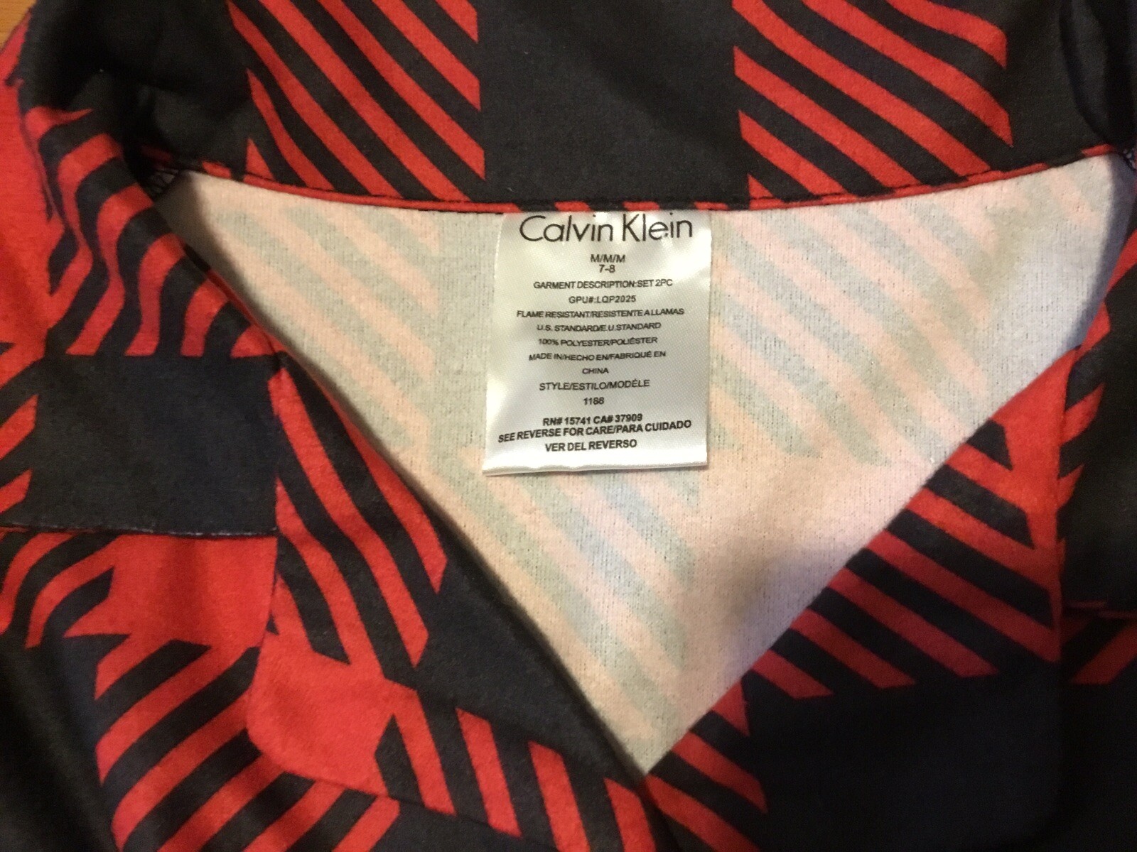 как выглядит Calvin Klein Pajama Set Boys Medium 7-8 Plaid Top Bottom Sleepwear Red Black New фото