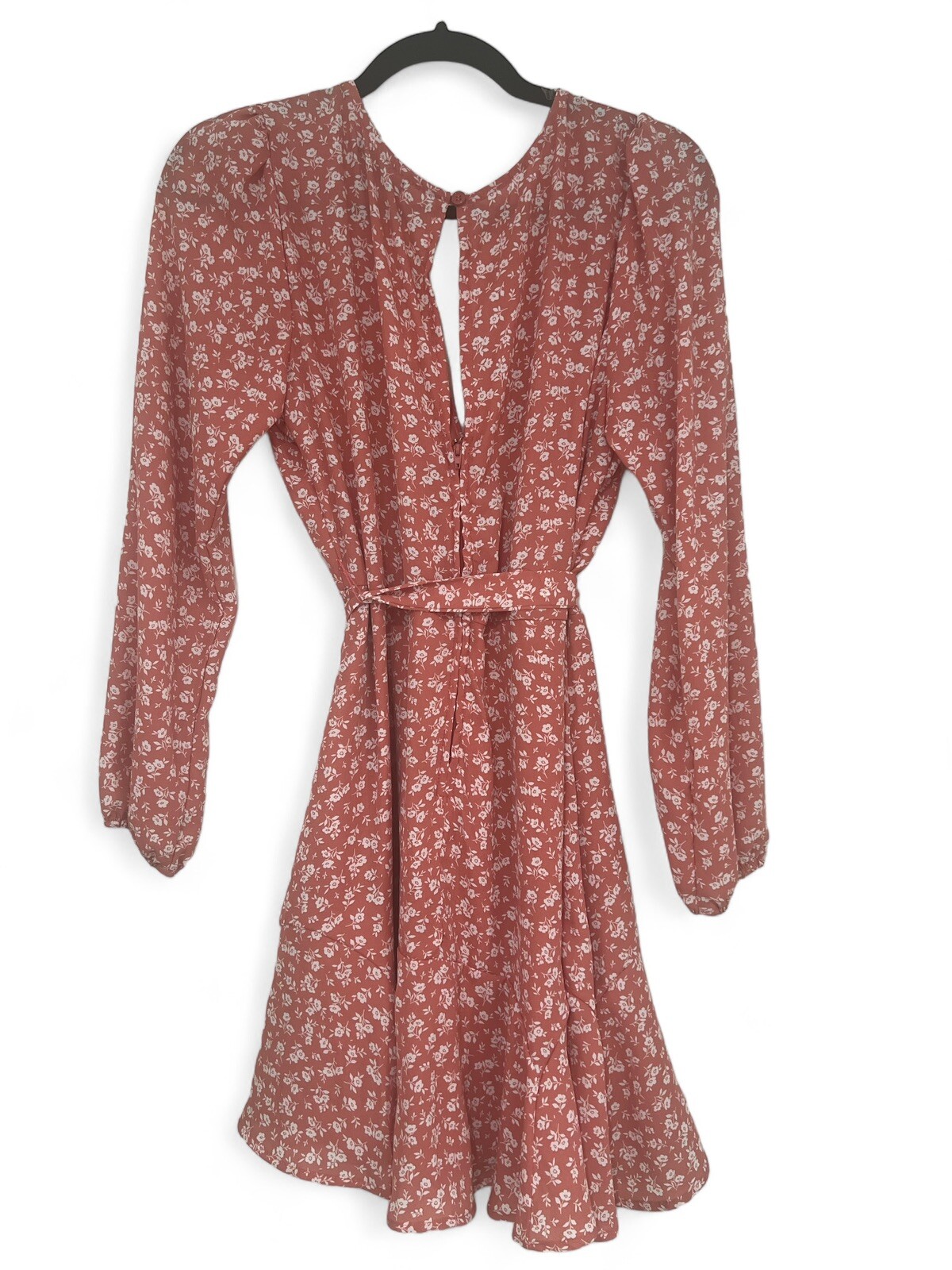 Trixxi long sleeve belted floral dress size M coral orange NWT 018
