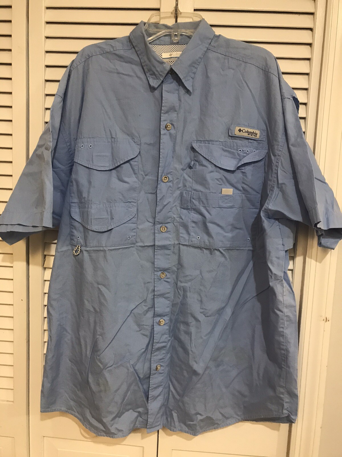 Columbia Mens Blue Shirt Button Down Sz Medium see Condition A61