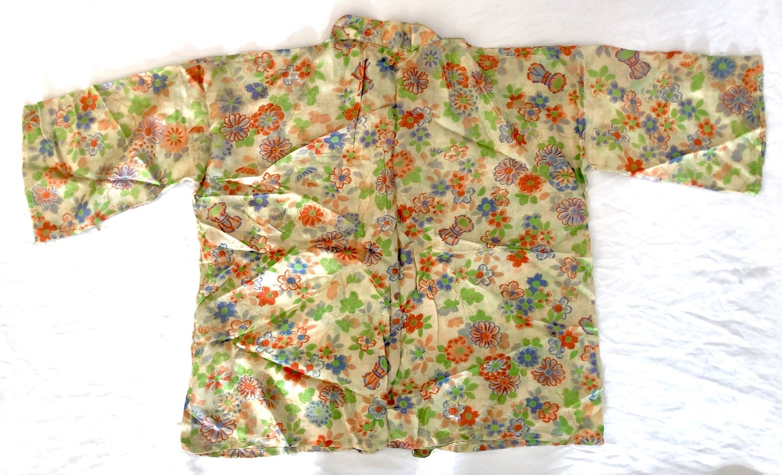 Rare Vintage 1920s Japan Pongee Raw Silk Child Pajama Set Top Bottom