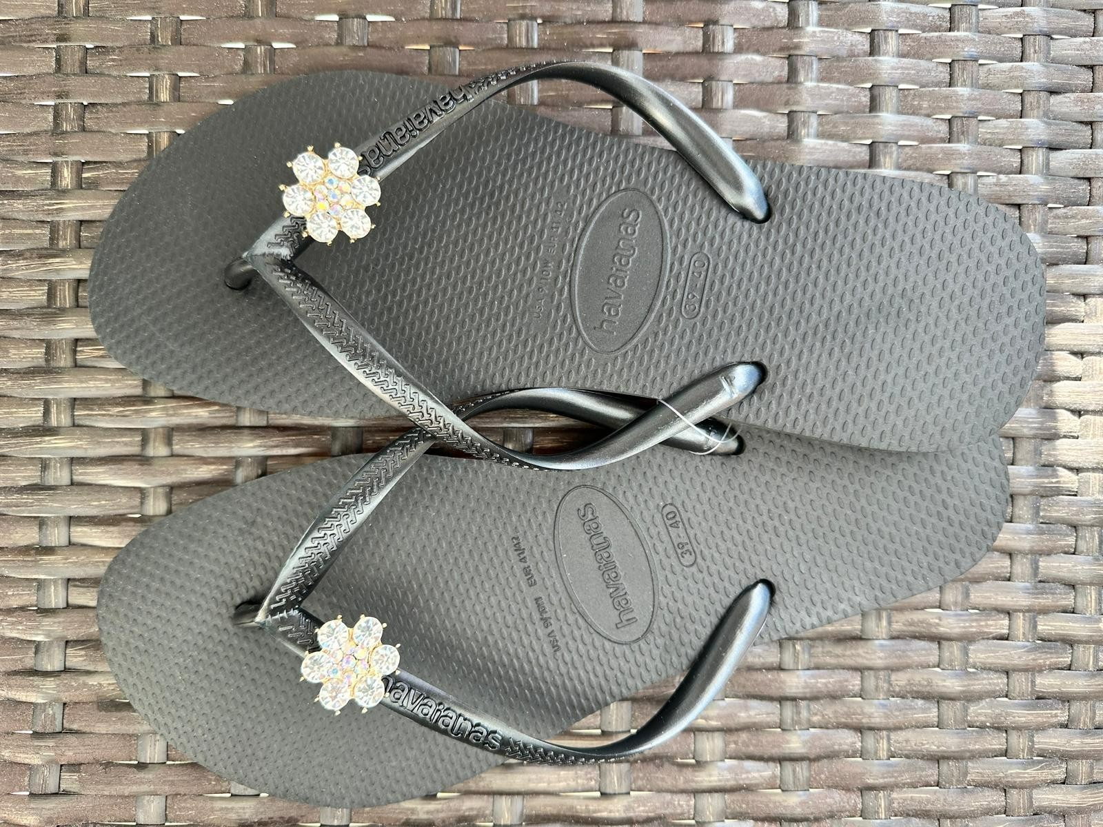 Havaianas Slim Flip Flops Women with Flower Crystal and Personalized Charm